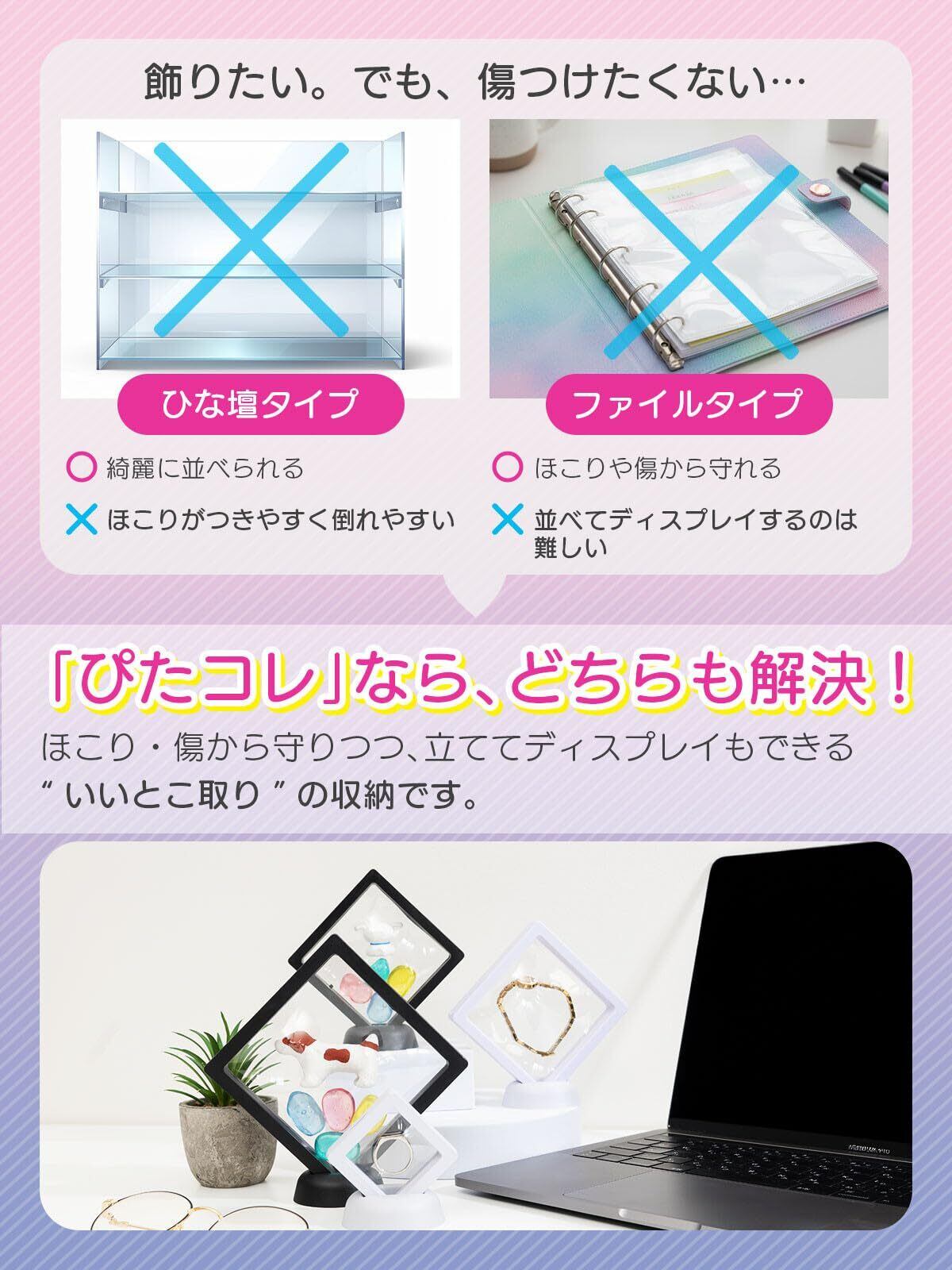 【立てて飾れる!】台座付きだから簡単に立たせて飾れる!コレクションをキレイに見せながら整理できます。