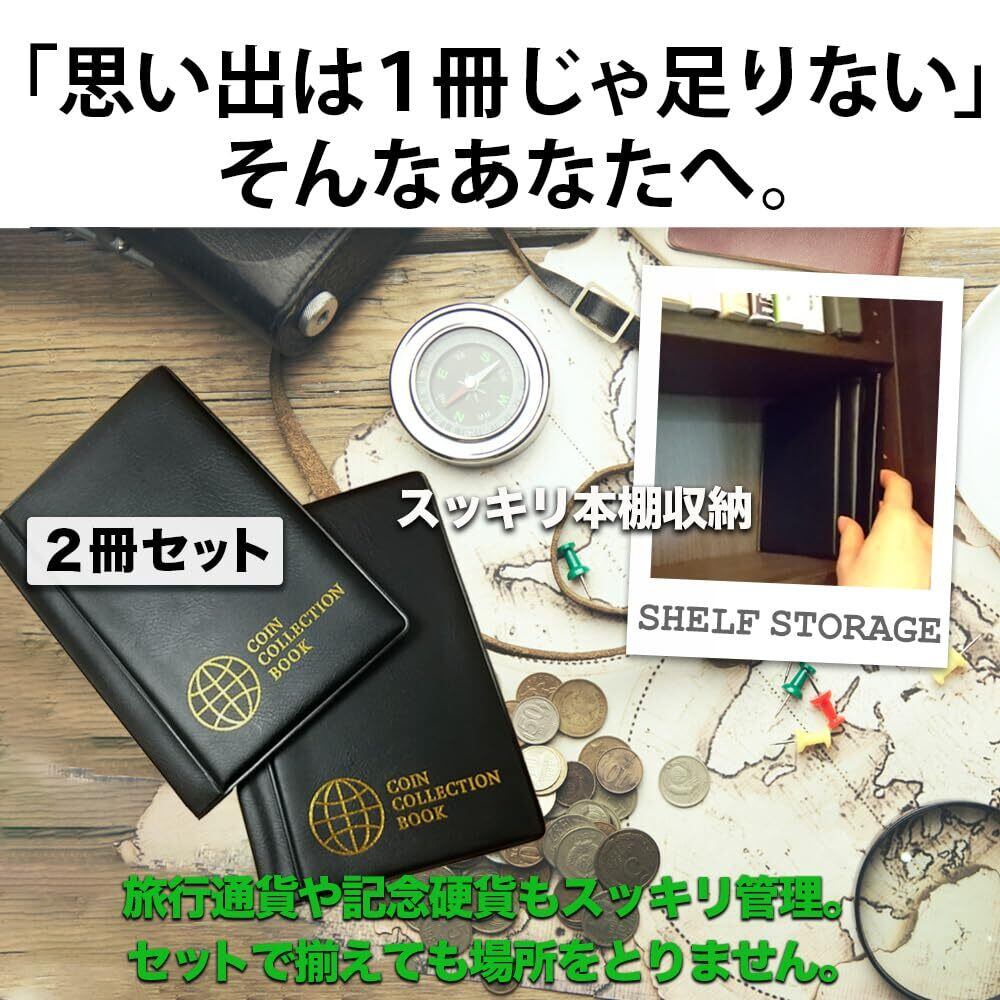 【使い分けに便利な2冊セットもご用意しています】 選べるバリエーションは、60枚タイプ・120枚タイプのほか、60+120の2冊セットもご用意。たとえば「1冊は旅先のコイン」「もう1冊は記念通貨」など、用途別の保管はもちろん、親子での共有やギフトとしても喜ばれています。