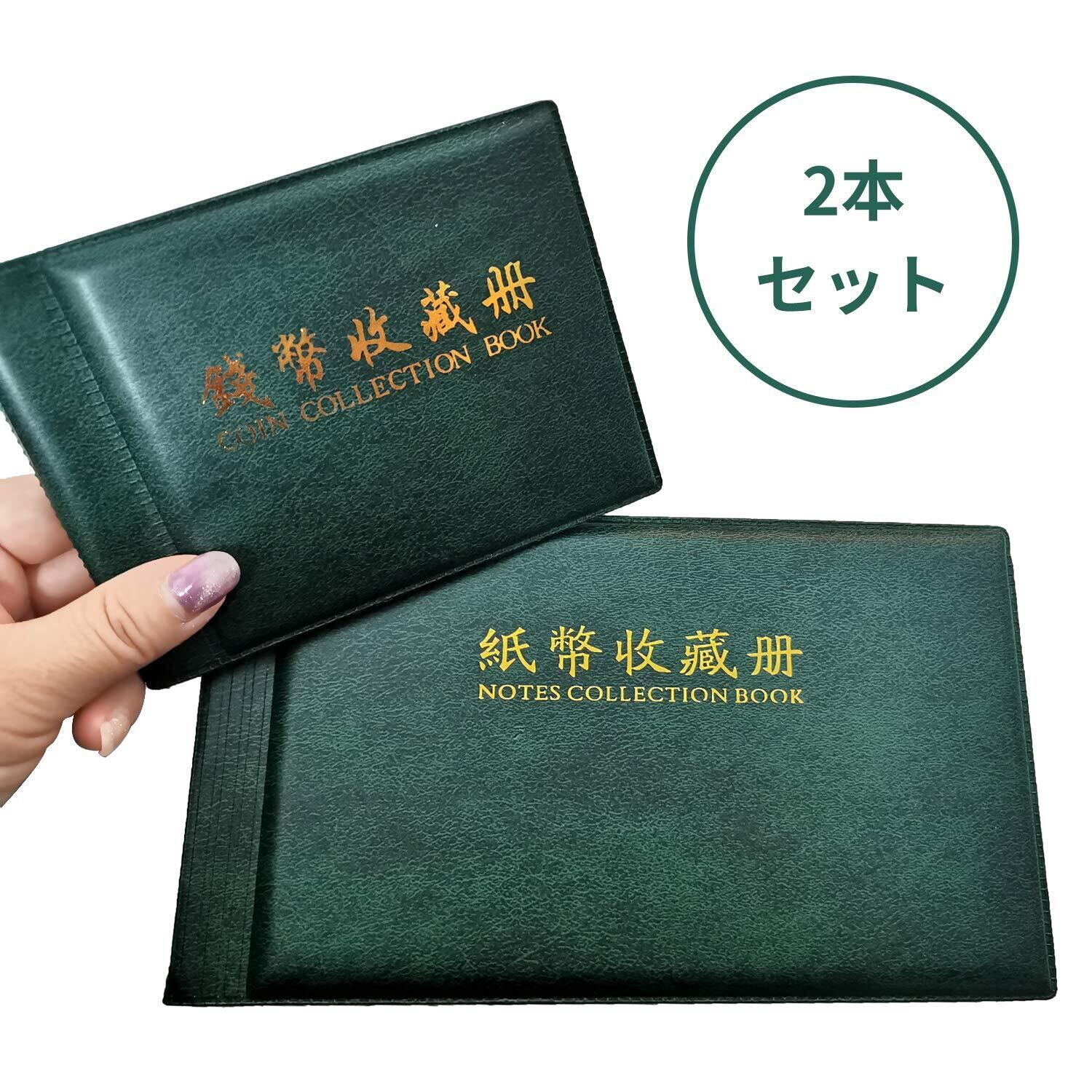 2冊セット 紙幣 コイン 収集 保存用 コレクション アルバム 優品質 30ページ 60ホルダー お金ポケット 通貨 収納ホルダー ケース (グリーン)