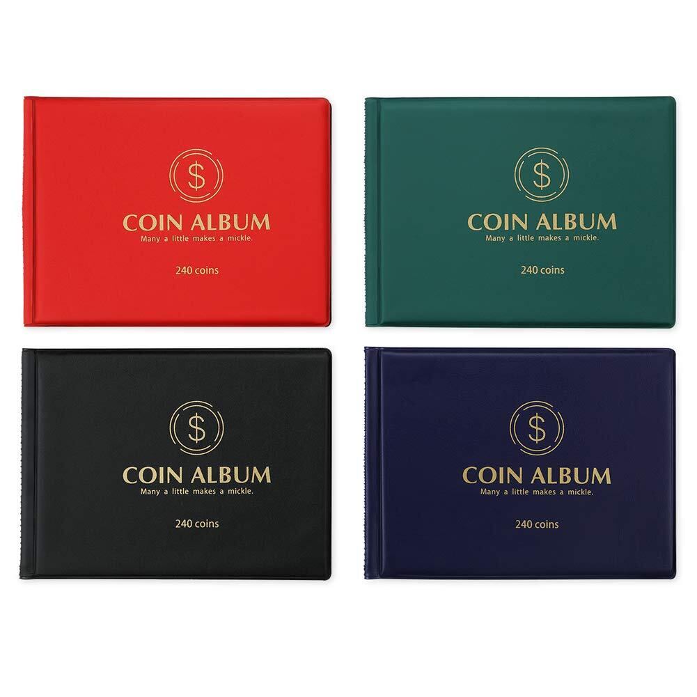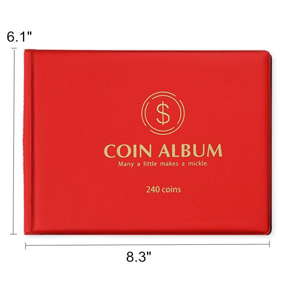 MUDOR コレクター用240ポケットコインコレクションブック、3cm未満のコイン直径に適したコインホルダー (赤色)