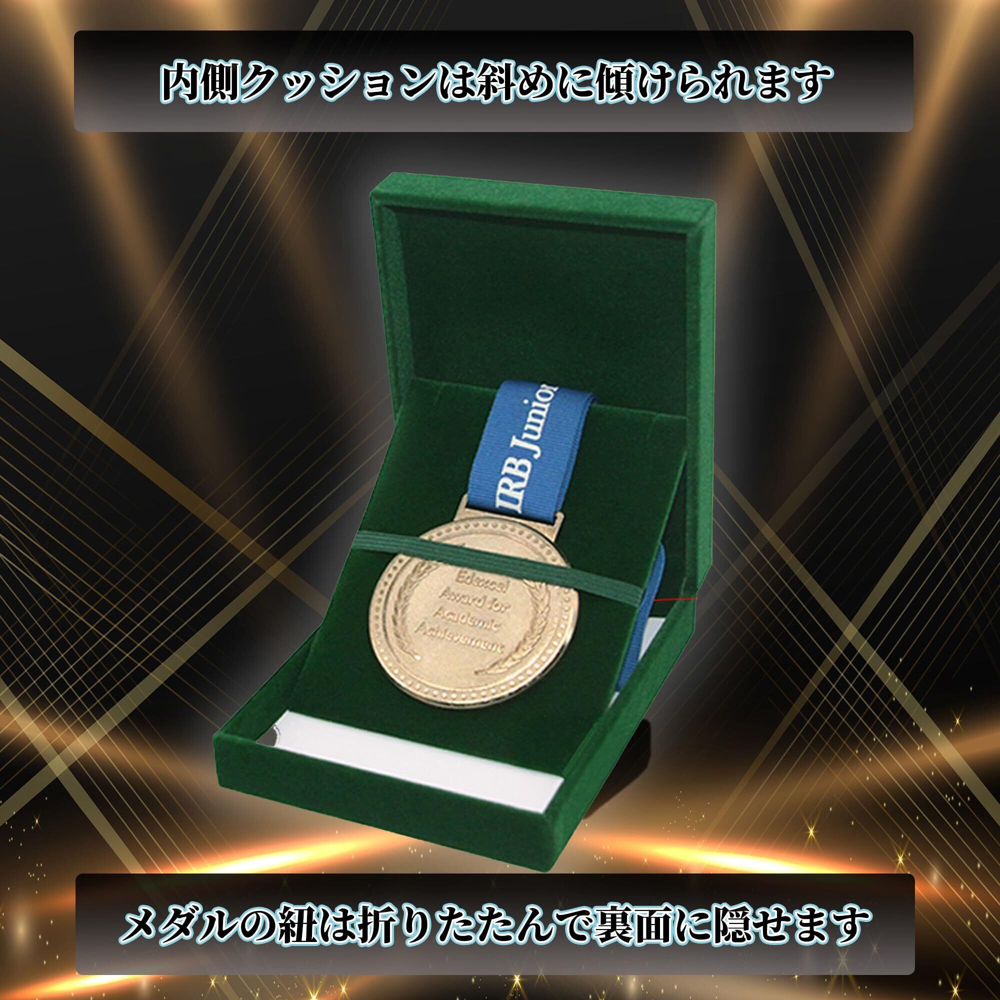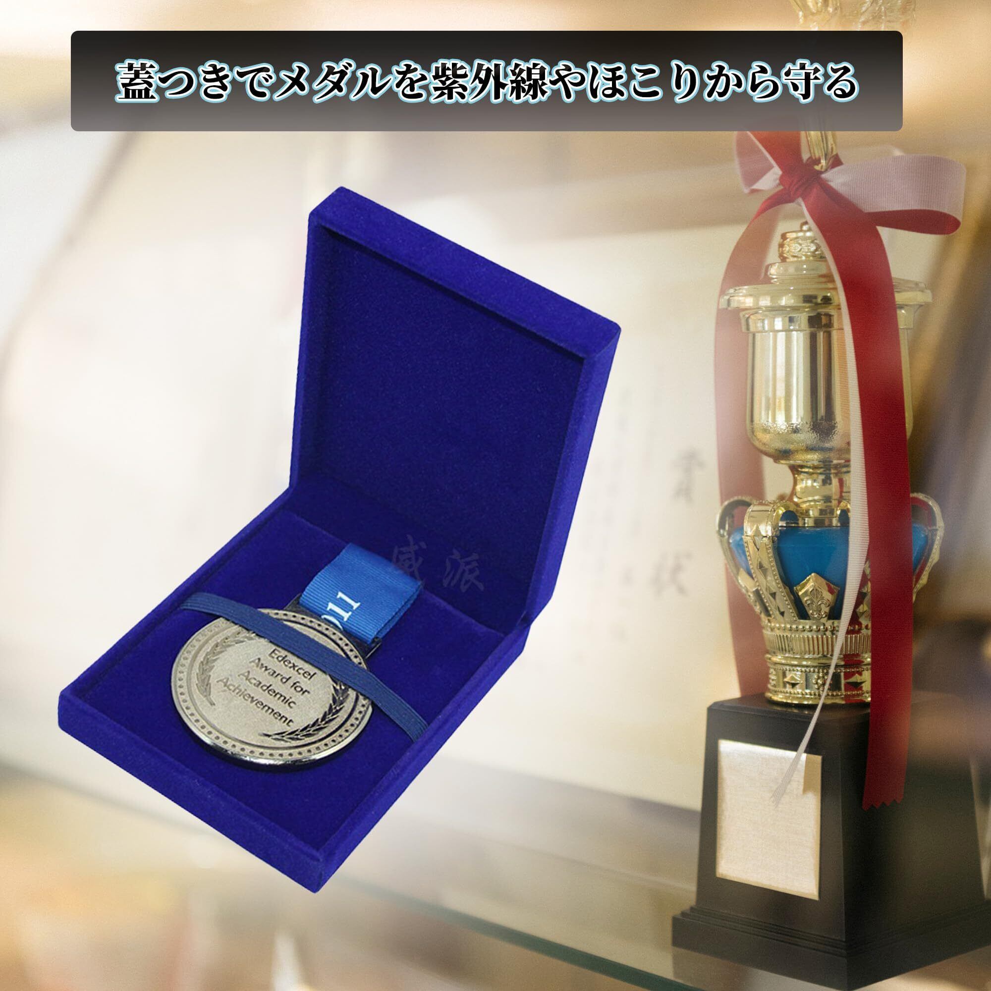 蓋つきでメダルを紫外線やほこりから守る:ベルベットの素材で紫外線を遮断、メダル本体も包むため長期保管の際も安心。持ち運びの最中も衝撃から守ります。