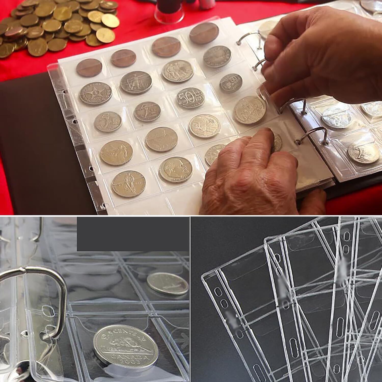 簡単固定:切手ポケットページの左側に9つの穴があり、アルバムや切手製本に簡単に固定することができ、固定後は脱落せず、より多くの硬貨、金銀ドル、貨幣用品を保管するためにより多くの硬貨ページが必要であることを心配している場合には、これは良い選択です。