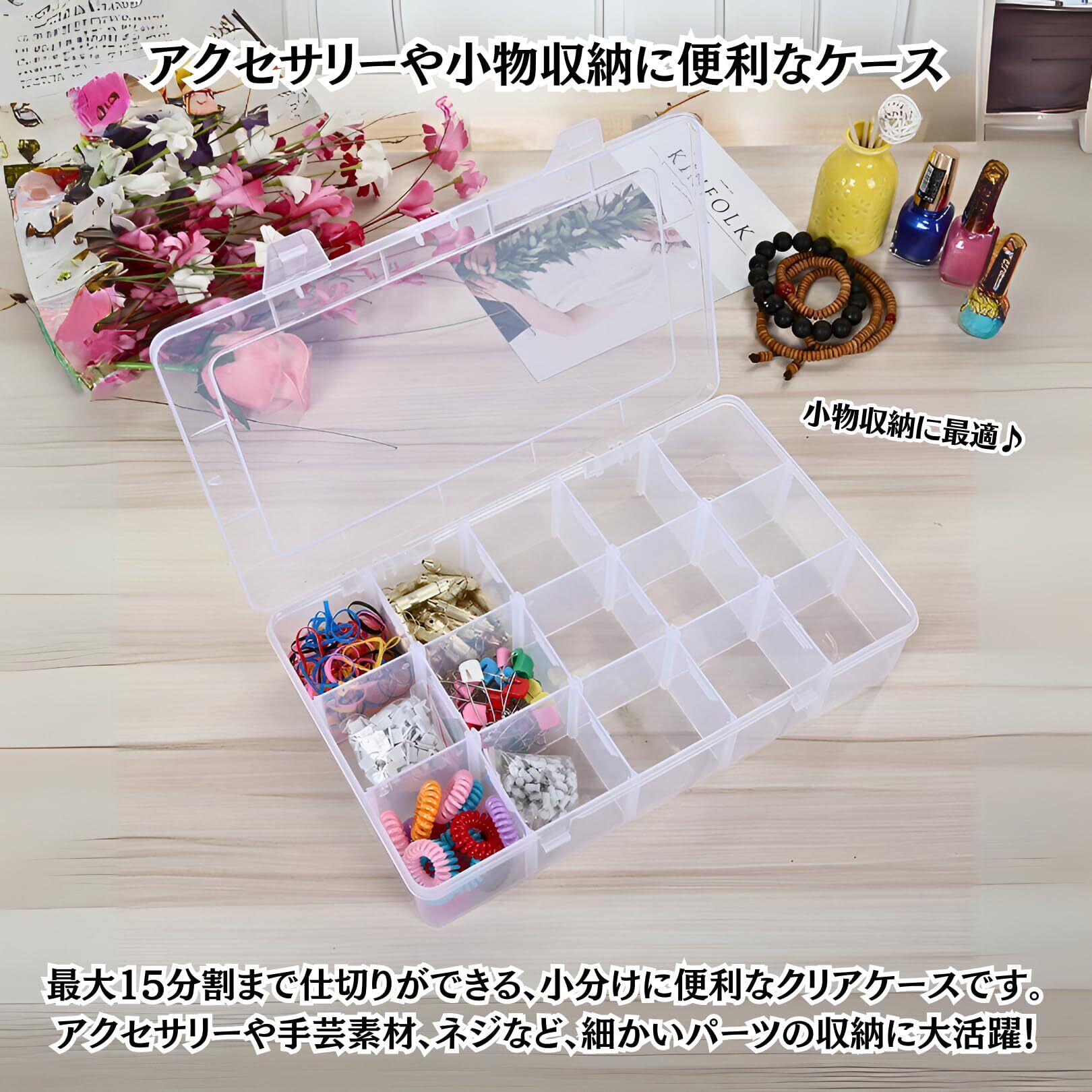 【アクセサリーや小物収納に】最大15分割まで仕切りができる、小分けに便利なクリアケースです。ピアスやイヤリング、指輪などのアクセサリー・小物収納に大活躍!ビーズやボタン、ネジや釘など、細かいパーツの収納ケースとしても最適です。