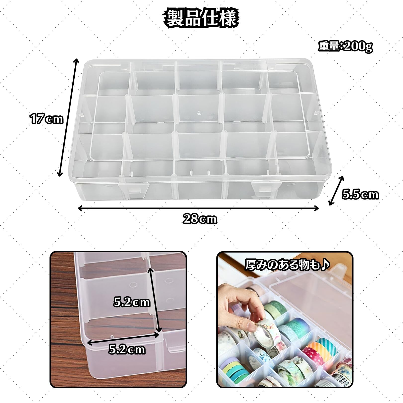 【製品仕様】サイズ:全体28×17×5.5cm 各収納部 5.2x5.2x5.5cm 素材:強化PP