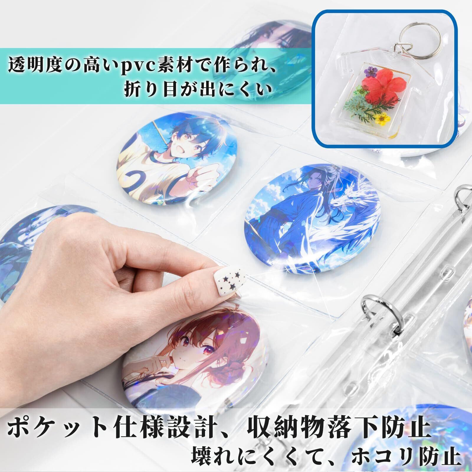 高品質生地:缶バッジ 収納、カードは高品質のPP素材を使用しています、折り目が出にくい。高品質金具、丈夫で耐久性抜群。透明度が高いのでキレイに中身が透ける!鑑賞にも最適!