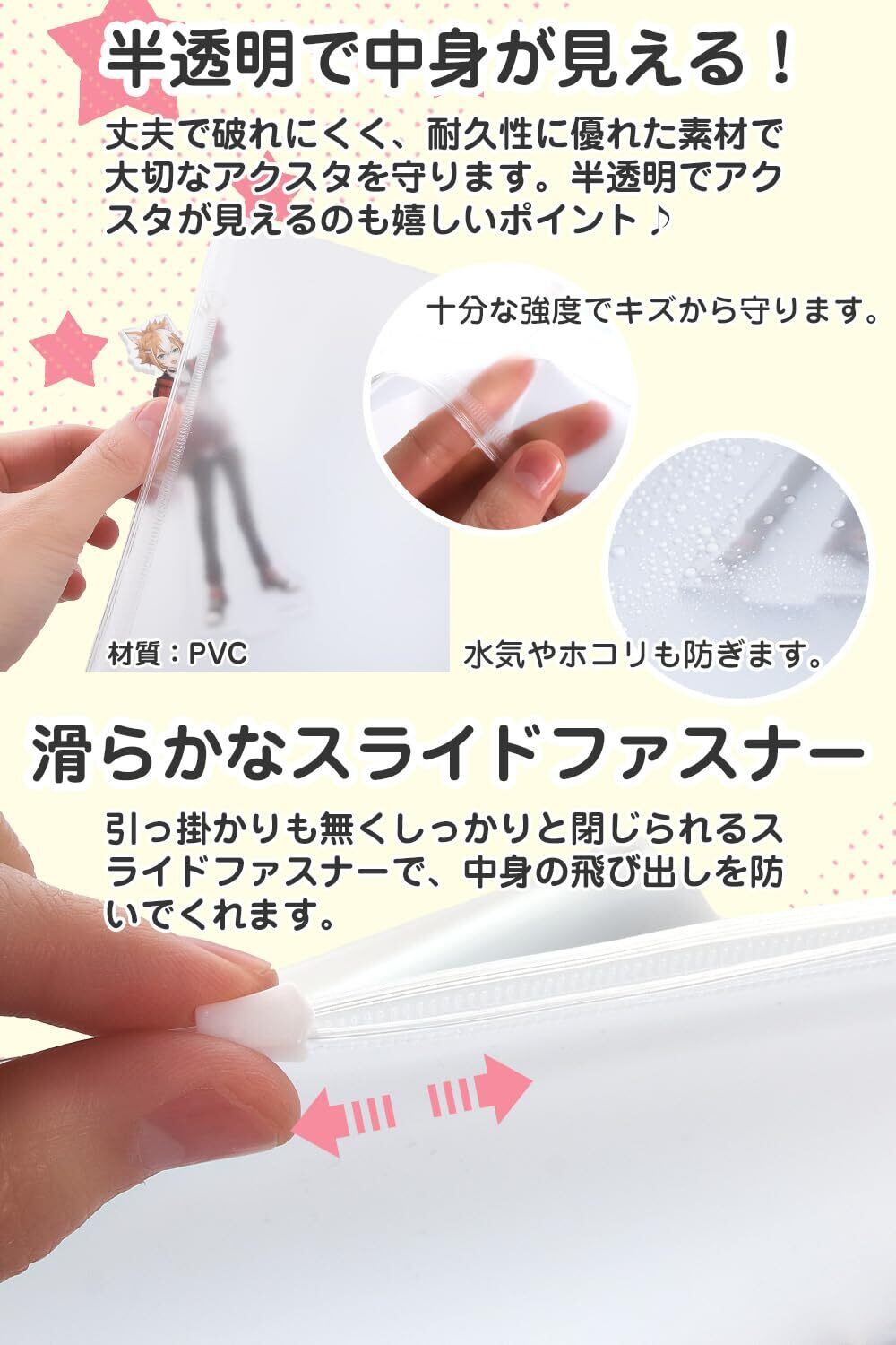 丈夫で破れにくい、耐久性に優れた素材で大切なアクスタを守ります。半透明でアクスタが見えるのも嬉しいポイント