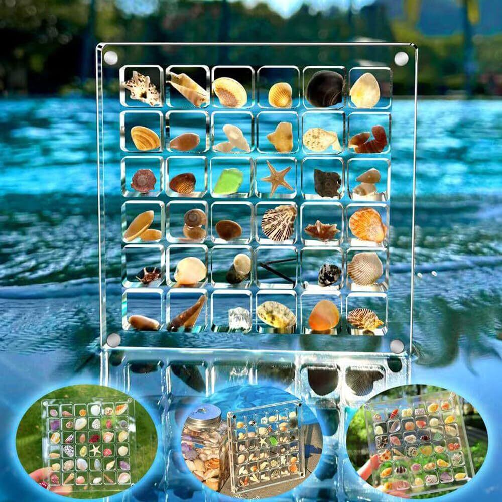 Dekori 貝殻 ディスプレイ ボックス 透明 マグネット式 ミニ貝殻ボックス 防水 防塵 アクリル製 シェル収納ケース 展示ボックス 小分け容器 巻貝 ヒトデ ネイル ビーズ 小物入れ 磁気ケース 自宅 オフィス 店舗 卓上用 蓋付き (36グリッド)