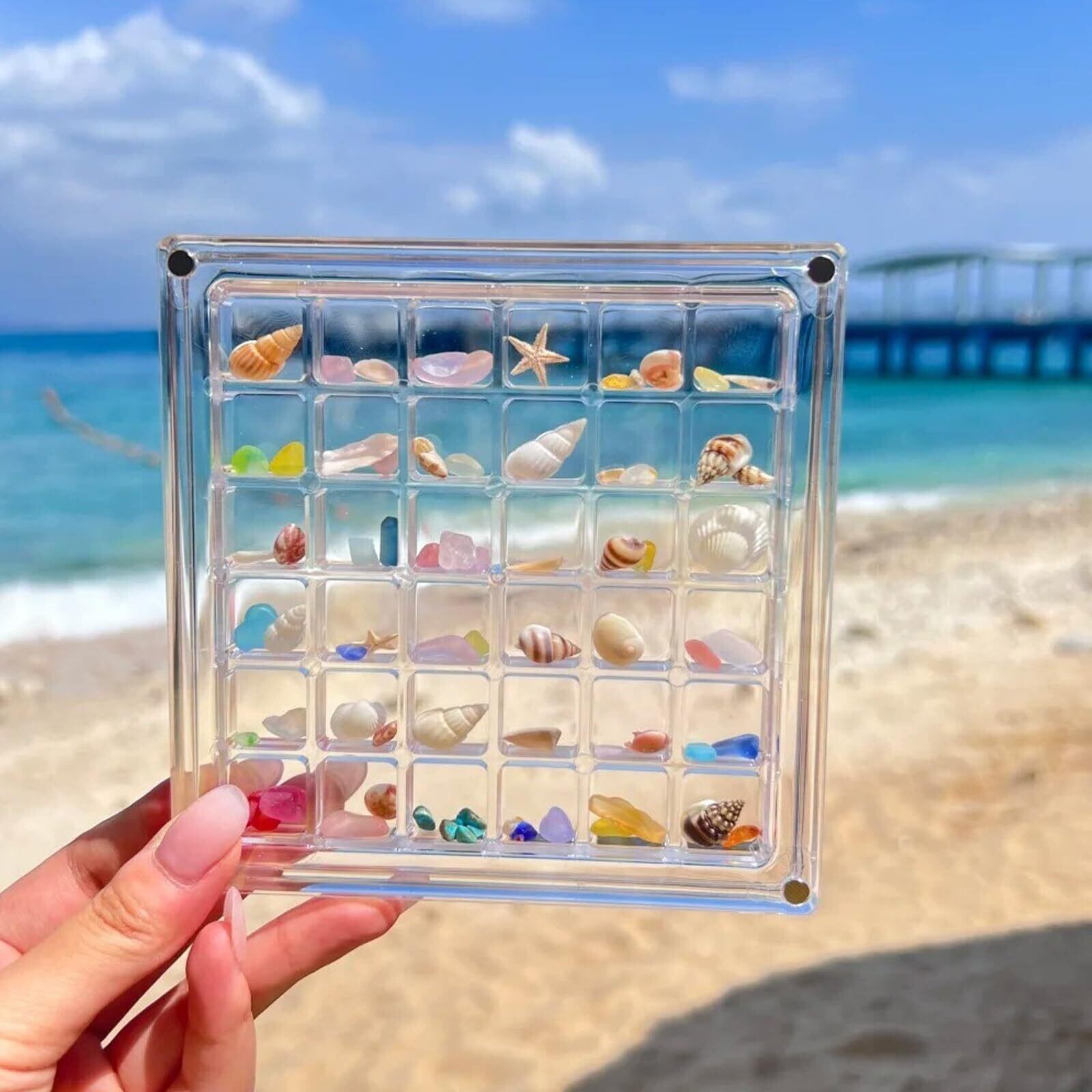 マグネット式小分け容器:ボックスの四隅にマグネットバックルが付いているので、蓋を閉めた後、しっかりと固定でき、貝殻がバラバラになる心配がありません。33グリッド/36グリッドに仕切りして、アイテムごとに個別の収納スペースを提供します。