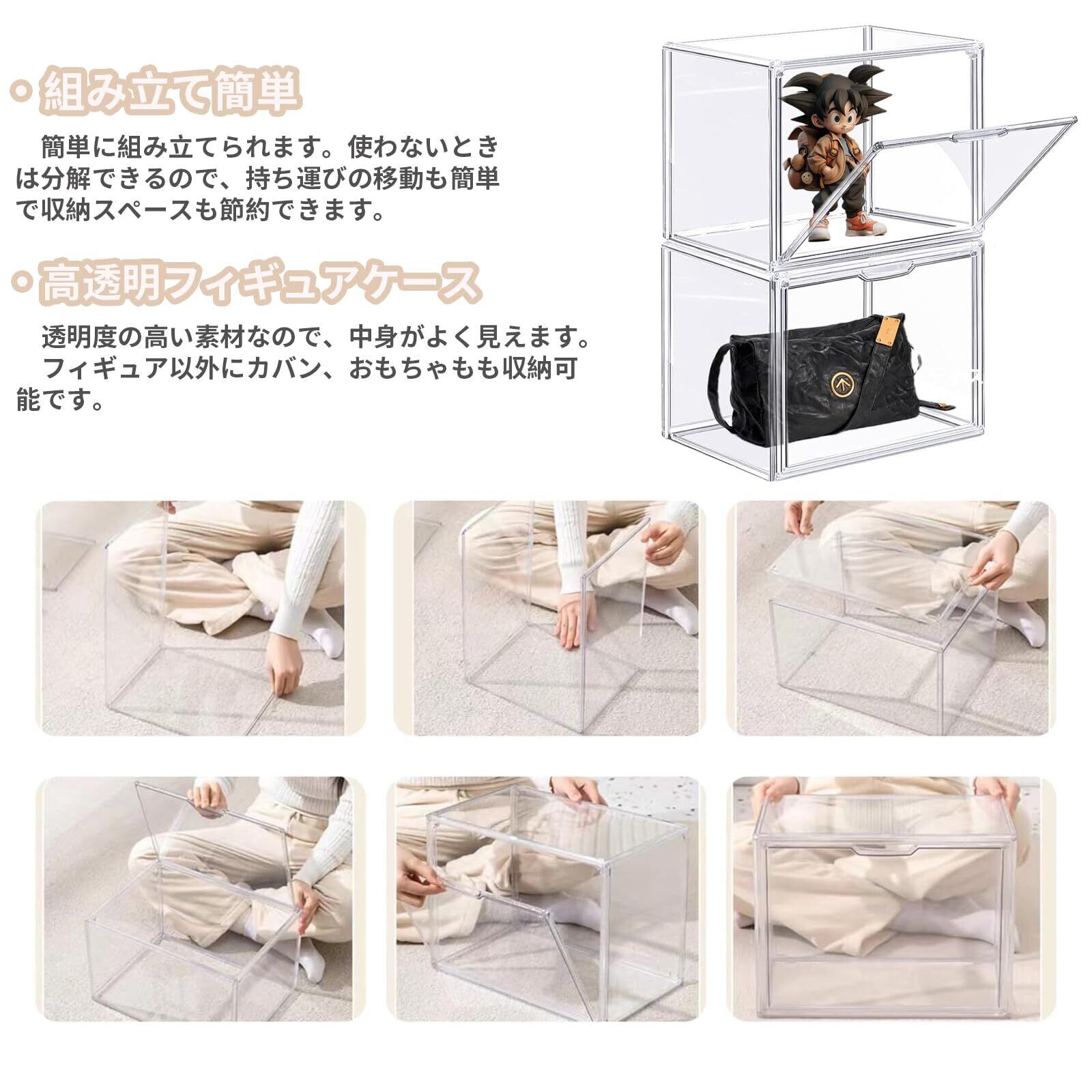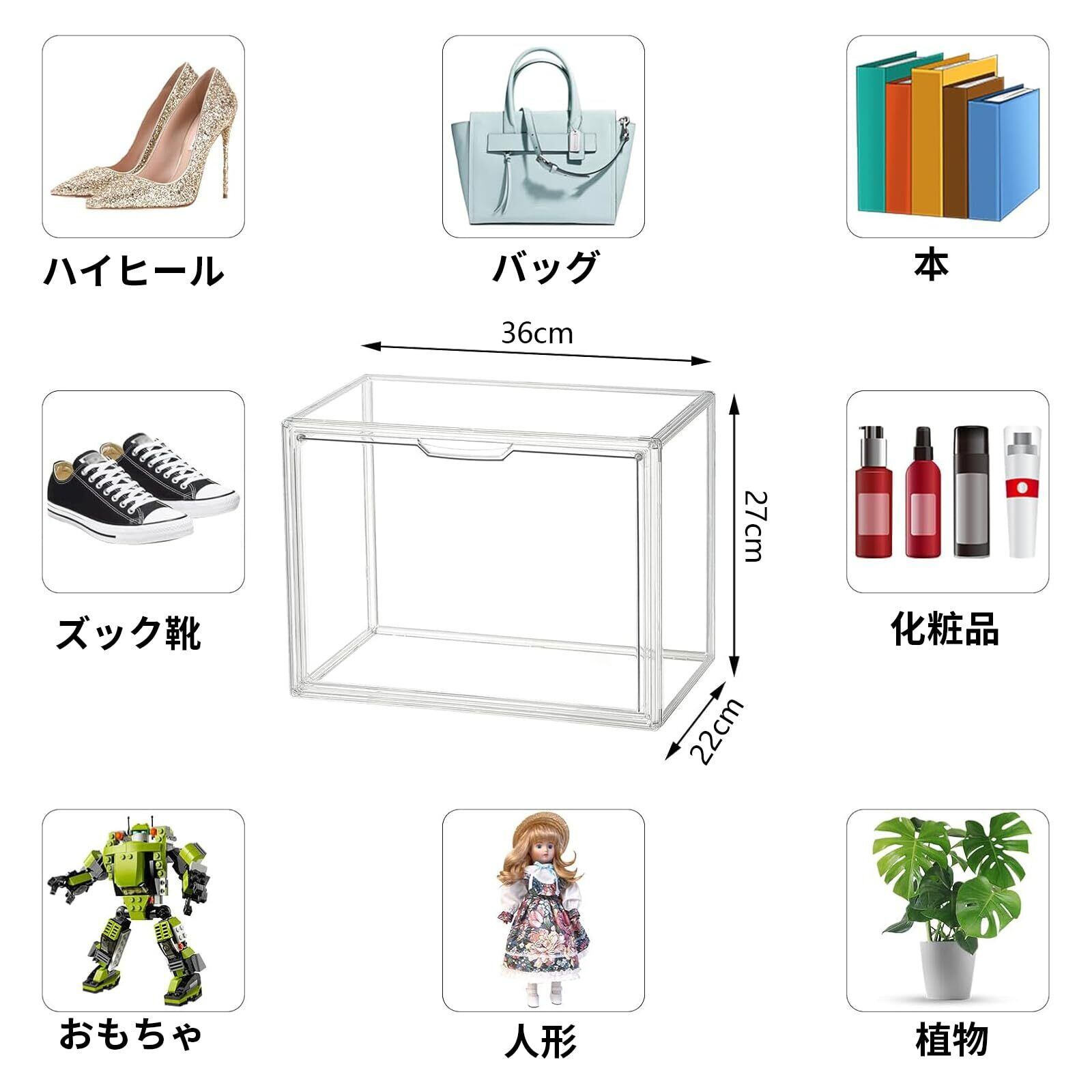 【磁石ドアデザイン】透明コレクションケースのサイズは36×22×27cmで、フィギュア、ドール、お人形、おもちゃ、メイク用品、ファッション小物など収納可能です。磁石ドアで設けられているので、埃を防ぎ、取り出しにも簡単です。そして、積み重ね可能なので、クロゼット、寝室、リビングルームなどのスペイスの節約にもできます。