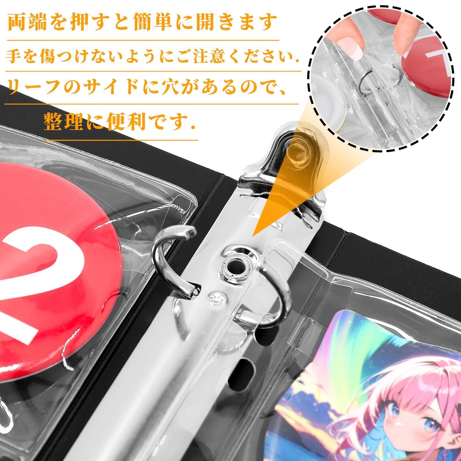 【高品質生地】:缶バッジ 収納、カードは高品質のPP素材を使用しています、折り目が出にくい。高品質金具、丈夫で耐久性抜群。透明度が高いのでキレイに中身が透ける!鑑賞にも最適!!!