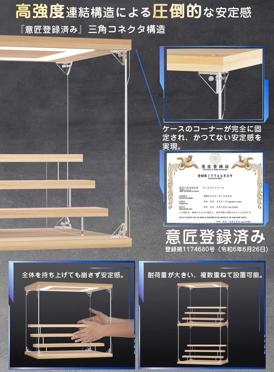 【高強度連結構造】次世代フィギュアケースの登場です!衝撃や揺れでも崩れない三角コネクタ構造により圧倒的な堅牢性を実現。大切なコレクションをしっかり守ります。