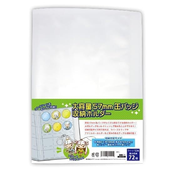 1ページに12ポケット、最大72個のアイテムを収納することが可能。コレクション用の缶バッジなどの収納にオススメです!