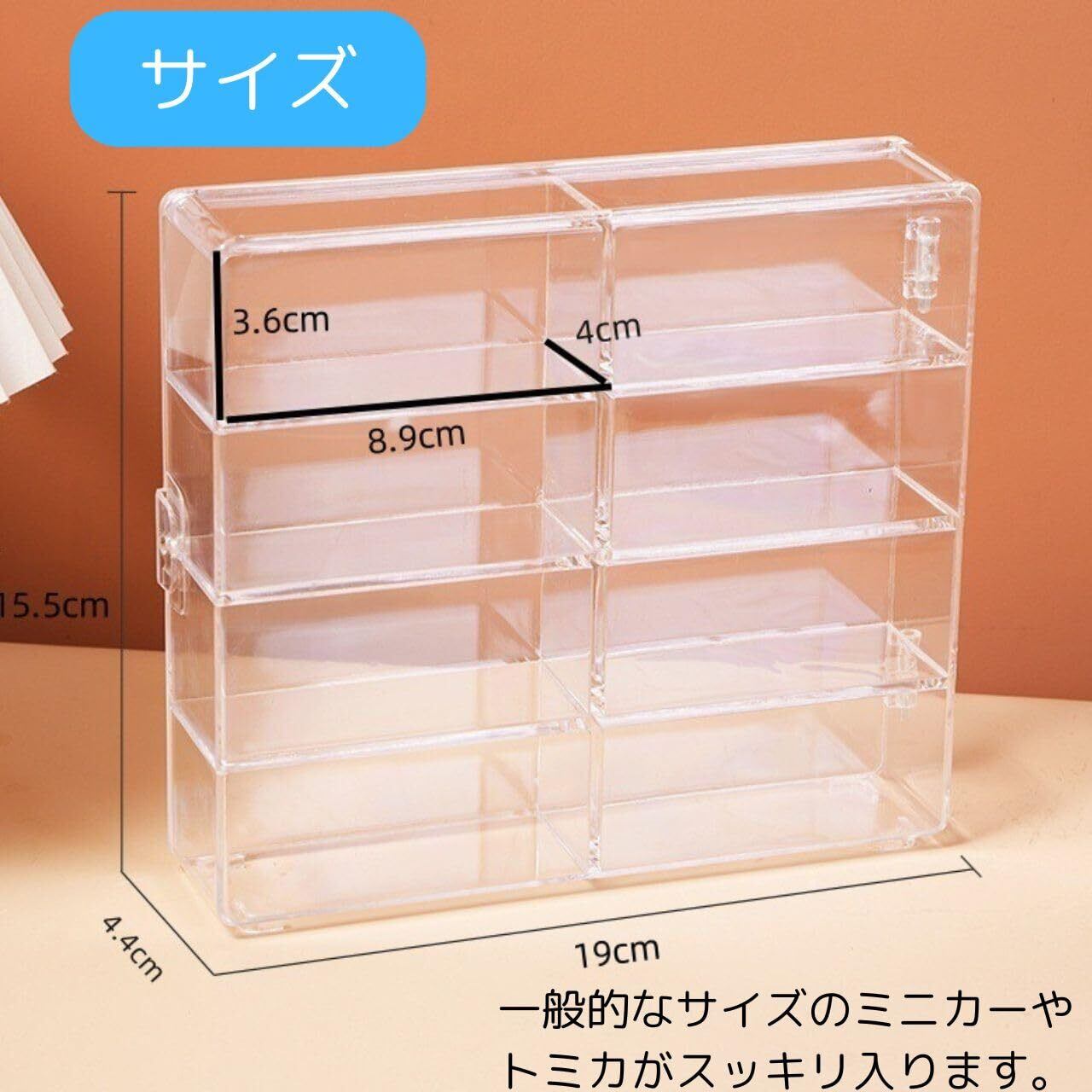 トミカ 収納 ケース ミニカー 収納ボックス 透明ケース トミカケース アクリル コレクション 扉あり 持ち運び 片付け 整理 (4点セット)