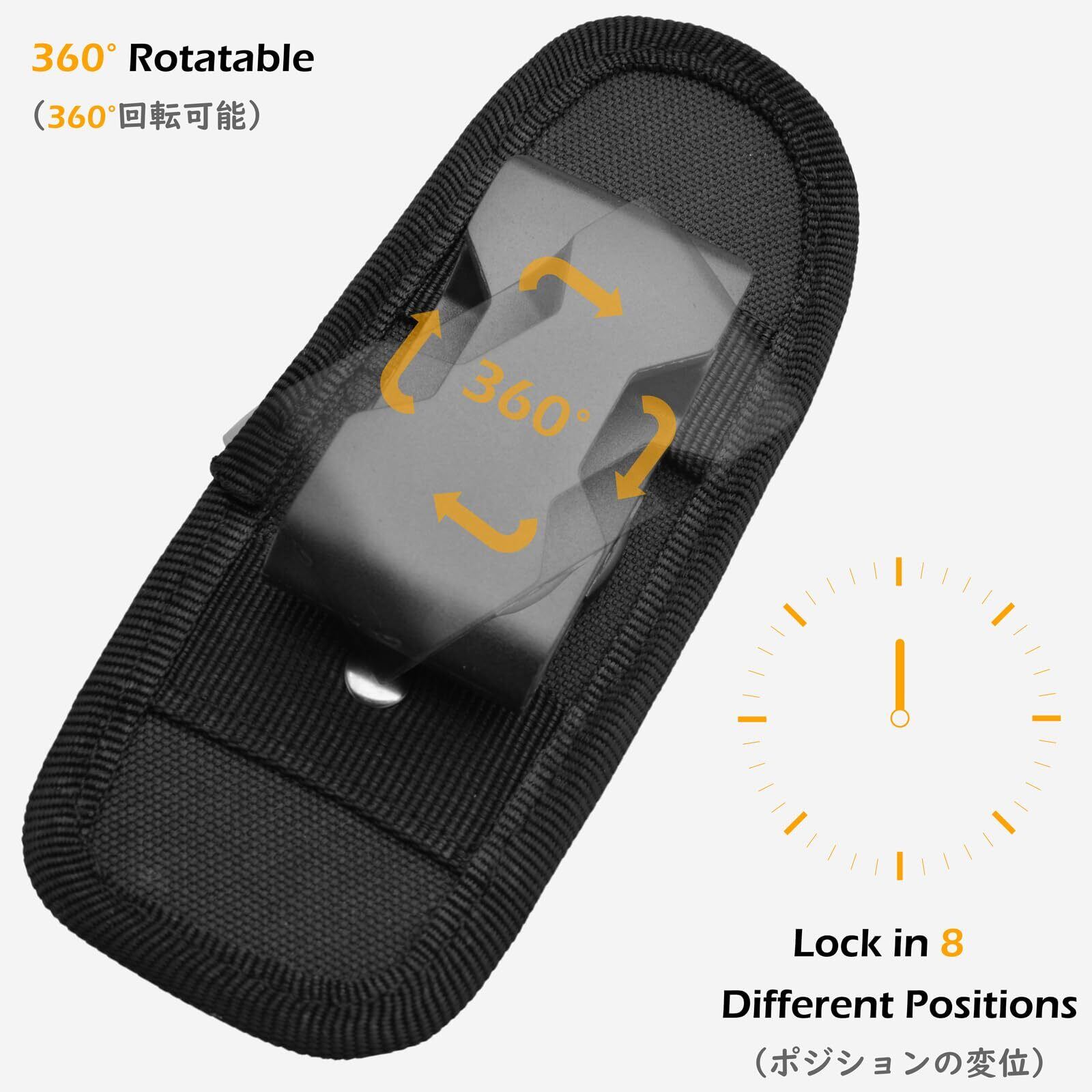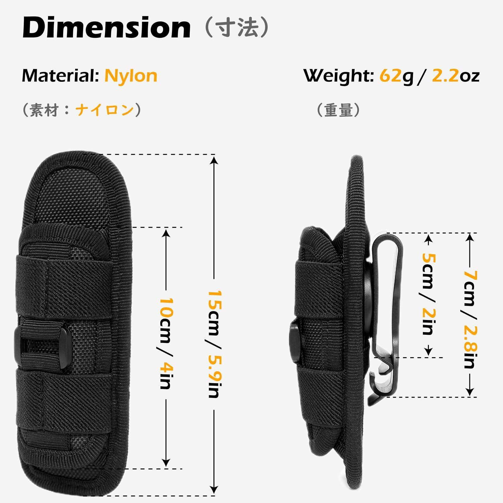 【サイズ】15x5.5cm。ナイフ、ペンチ付きマルチツール、フラッシュライト(懐中電灯)、携帯電話、杖などの収納に便利です