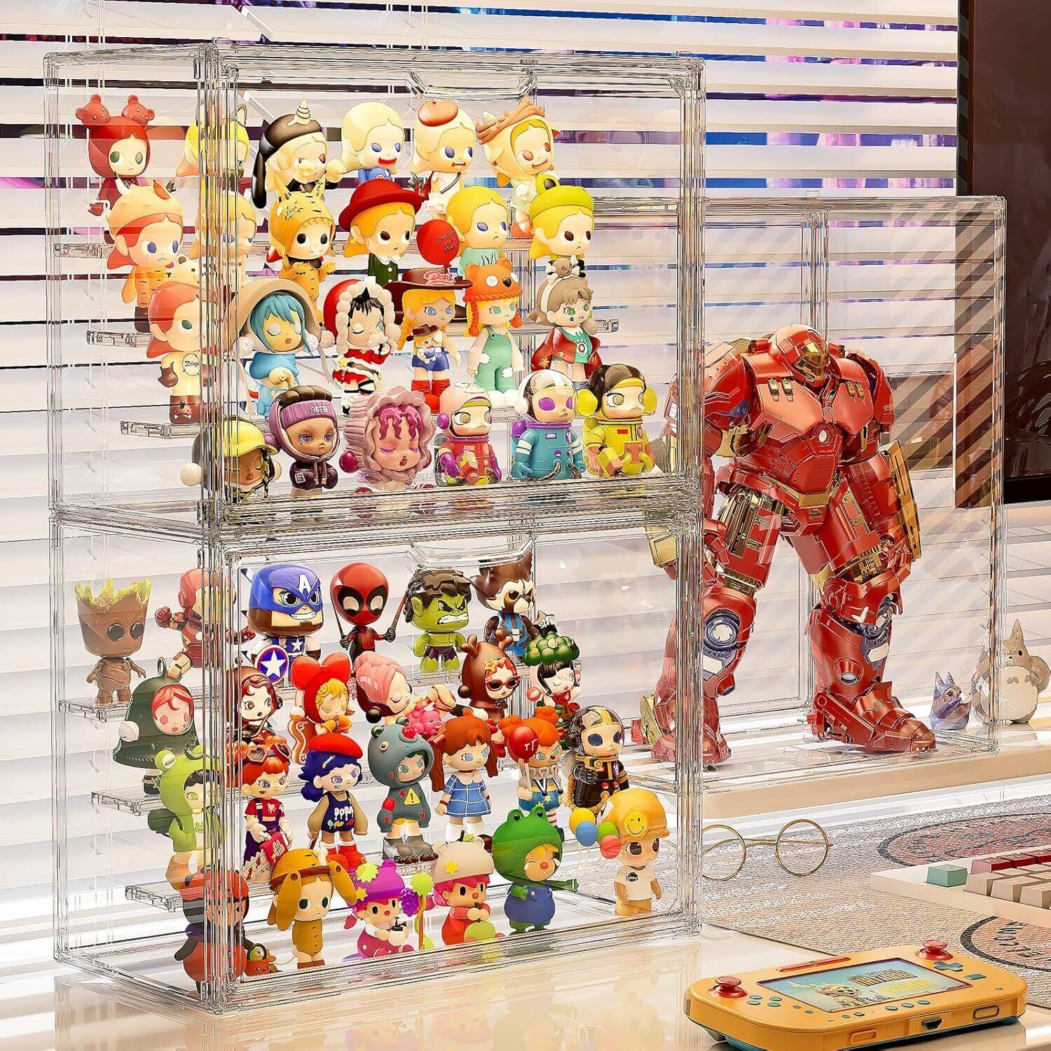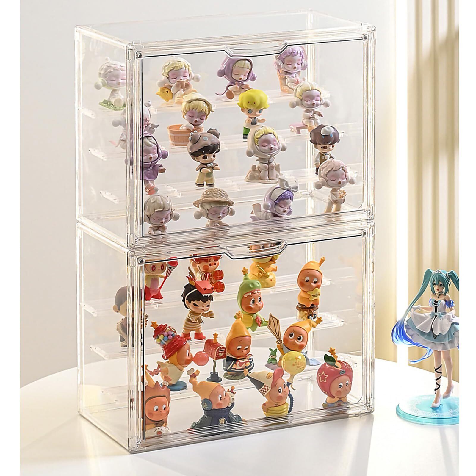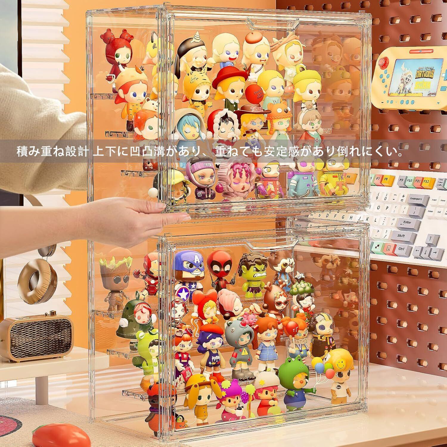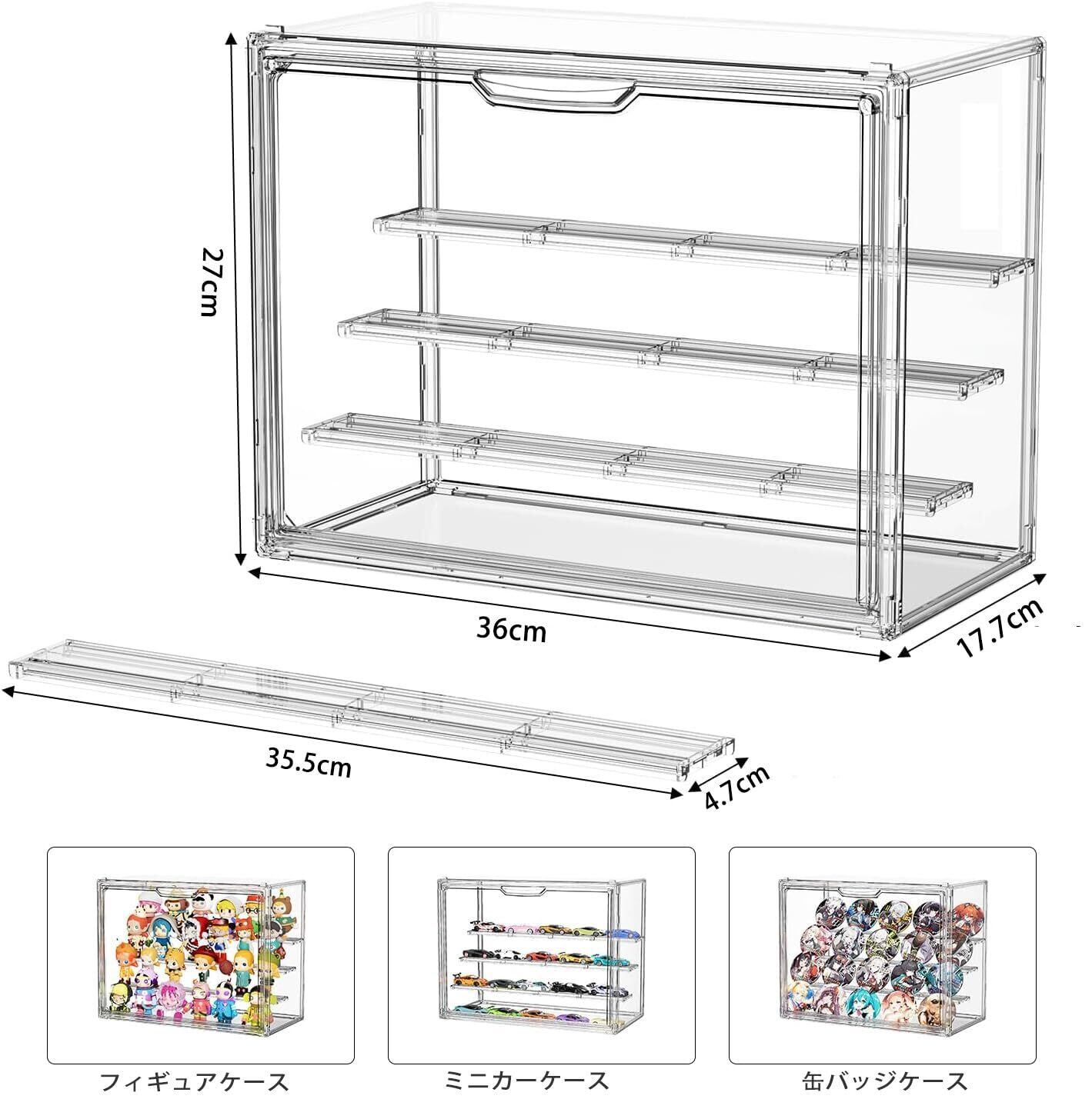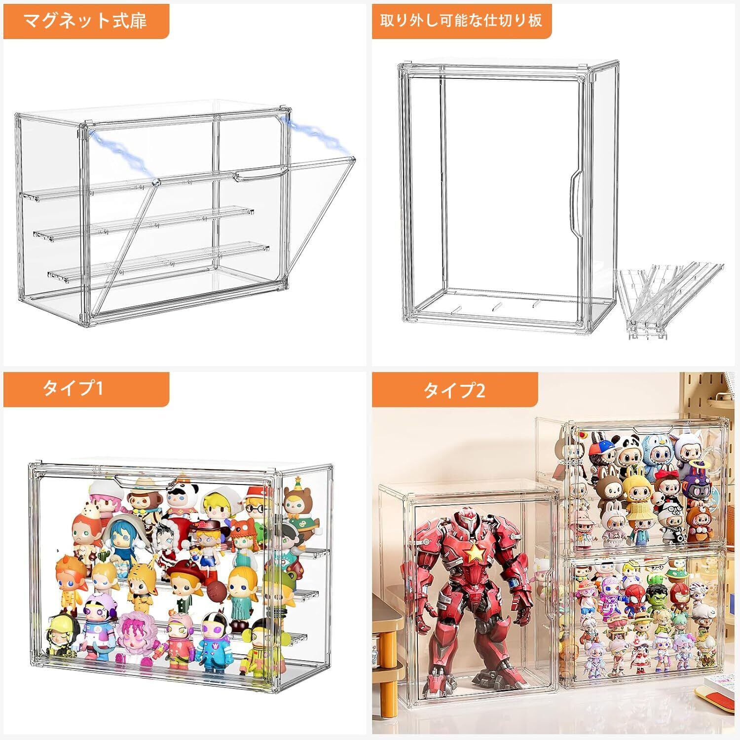 アクリルフィギュアケース 2個セット 36×17.7×27cm マグネット式扉 取り外し可能な仕切り板 積み重ね可能 組み立て簡単 透明 コレクションケース フィギュア 缶バッジ コスメ収納 防塵 ディスプレイケース