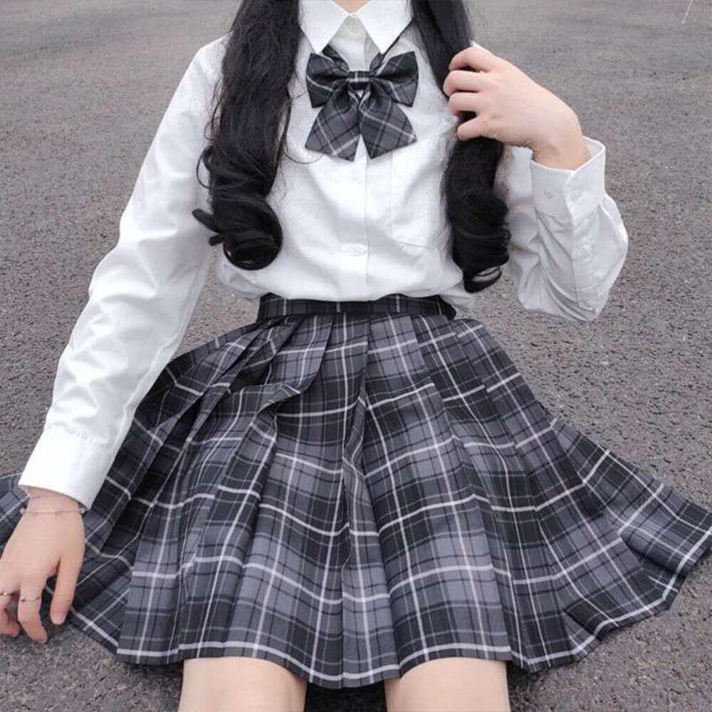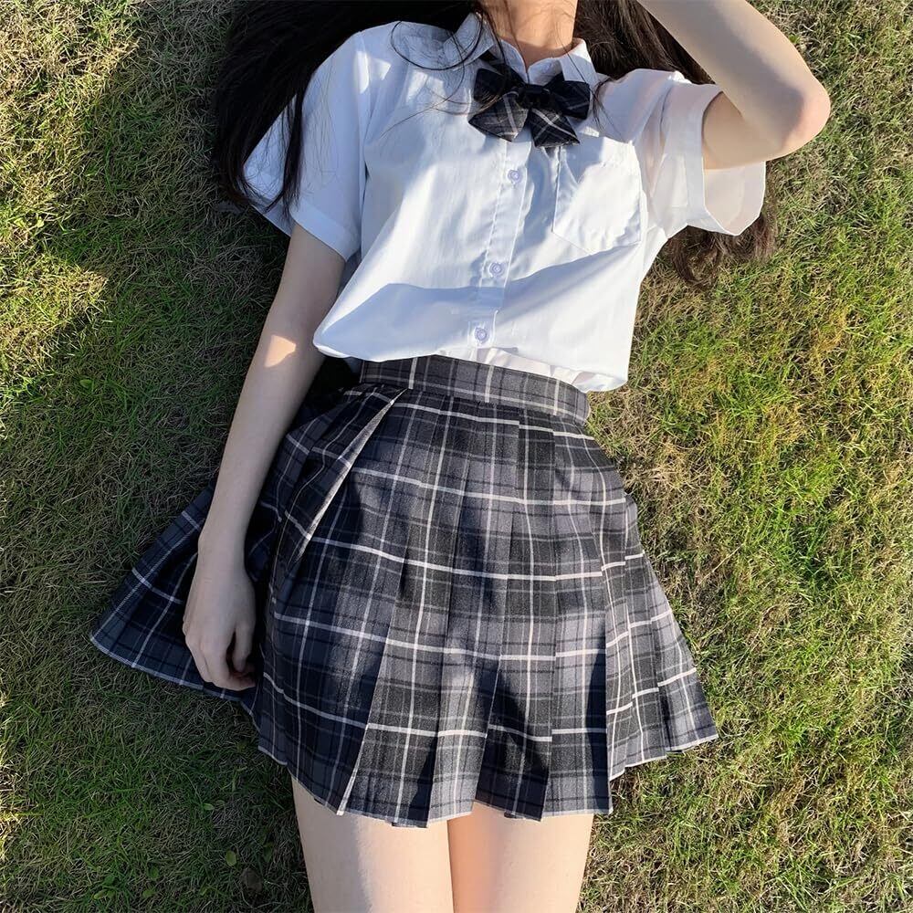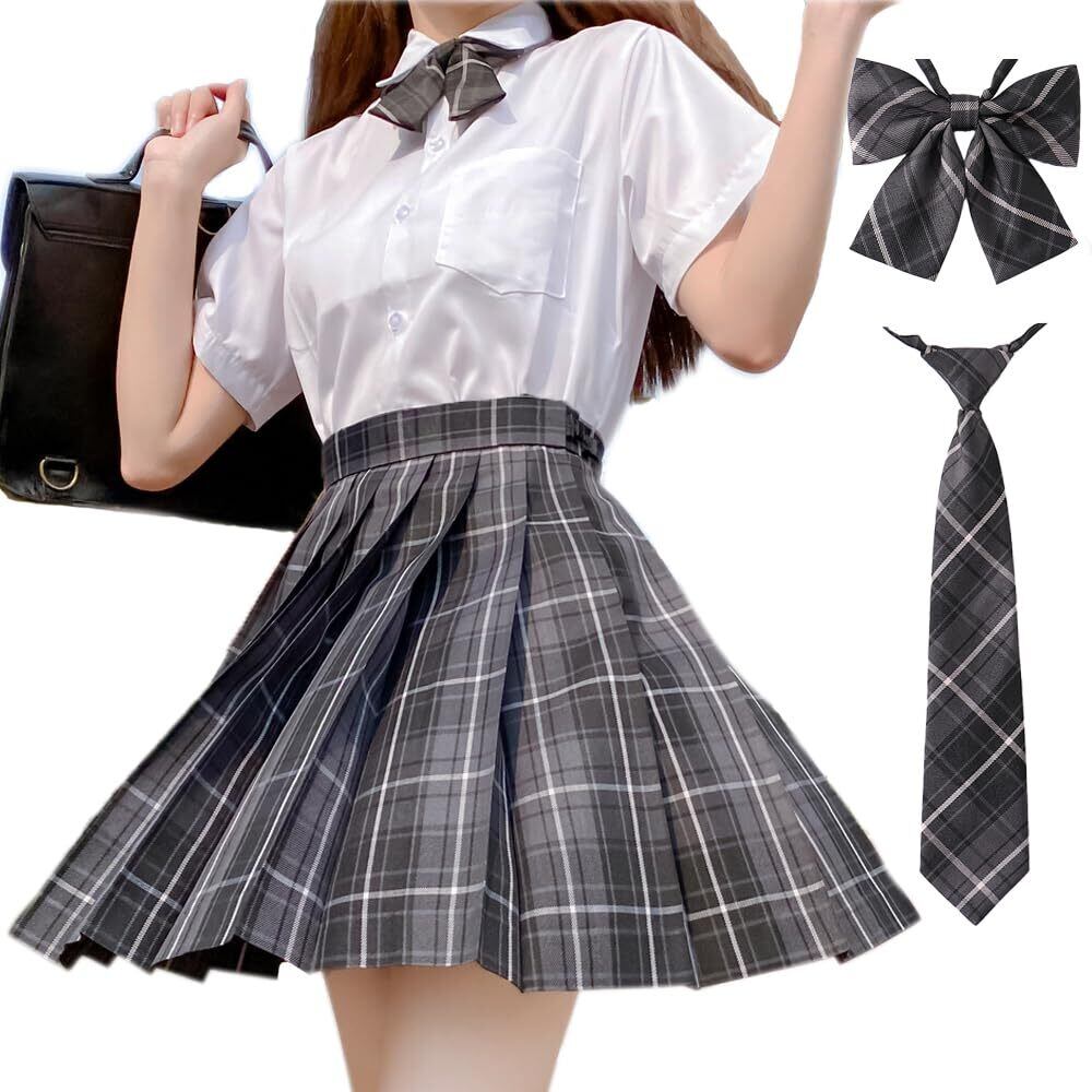 【数量限定】制服 スカート コスプレ 女子高生 プリーツスカート 3点セット 蝶ネクタイ&ネクタイ コスプレ ハイウエスト 学生服 洗濯機OK 調整可能ウエスト 学園祭 文化祭 チェック柄