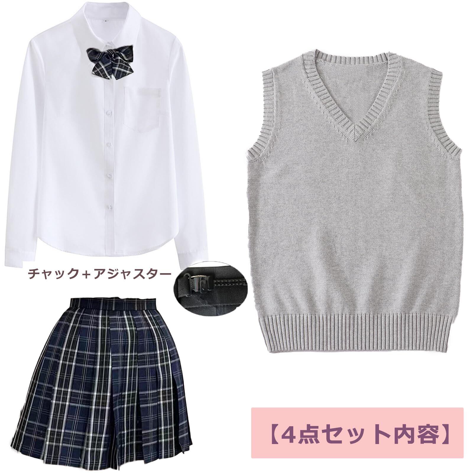 【数量限定】コスプレ 制服 女子 4点セット ニットベスト 白シャツ プリーツスカート 蝶結び スクール制服 女子高生 可愛い コスチューム スクール仮装 遊園地 学園祭 文化祭 卒業式
