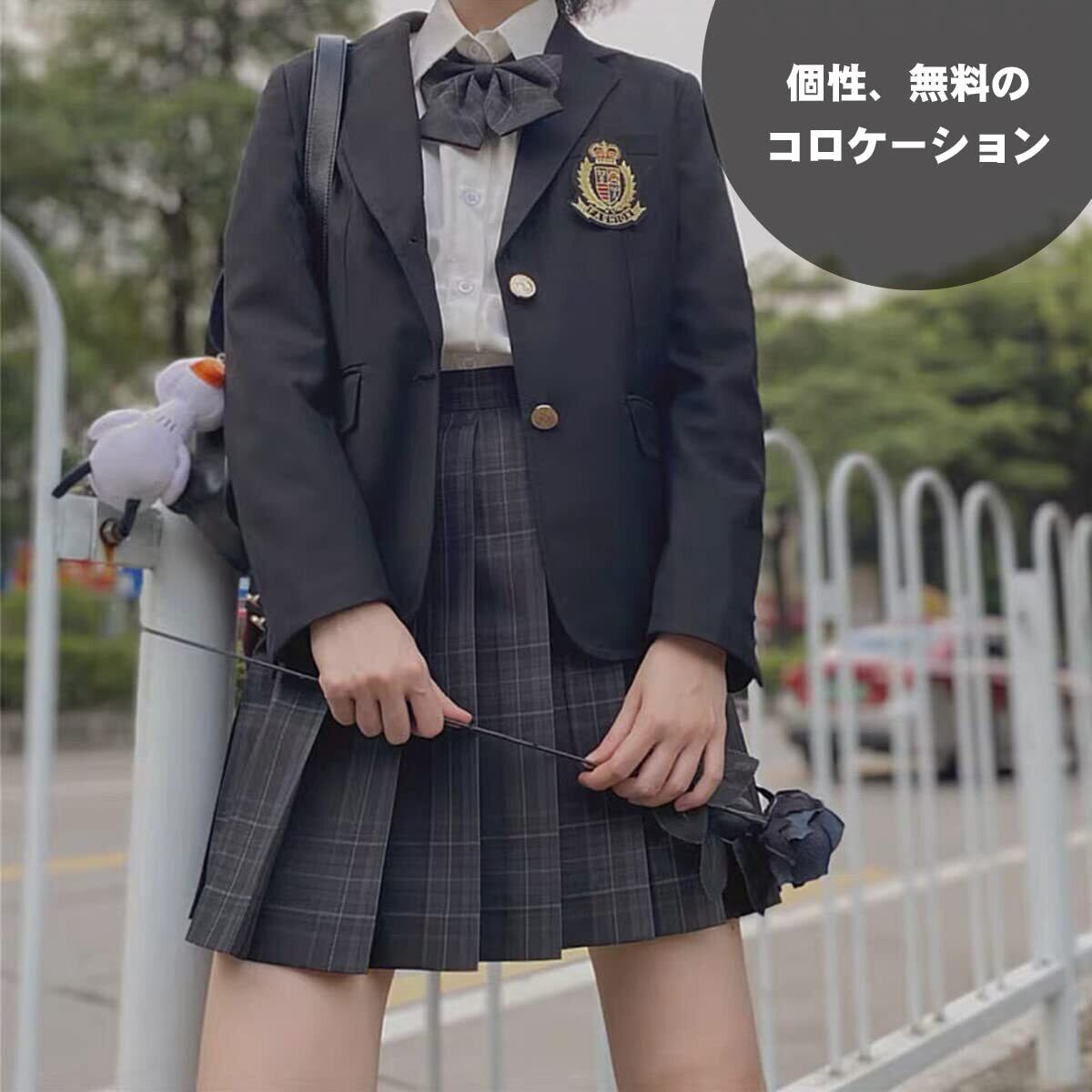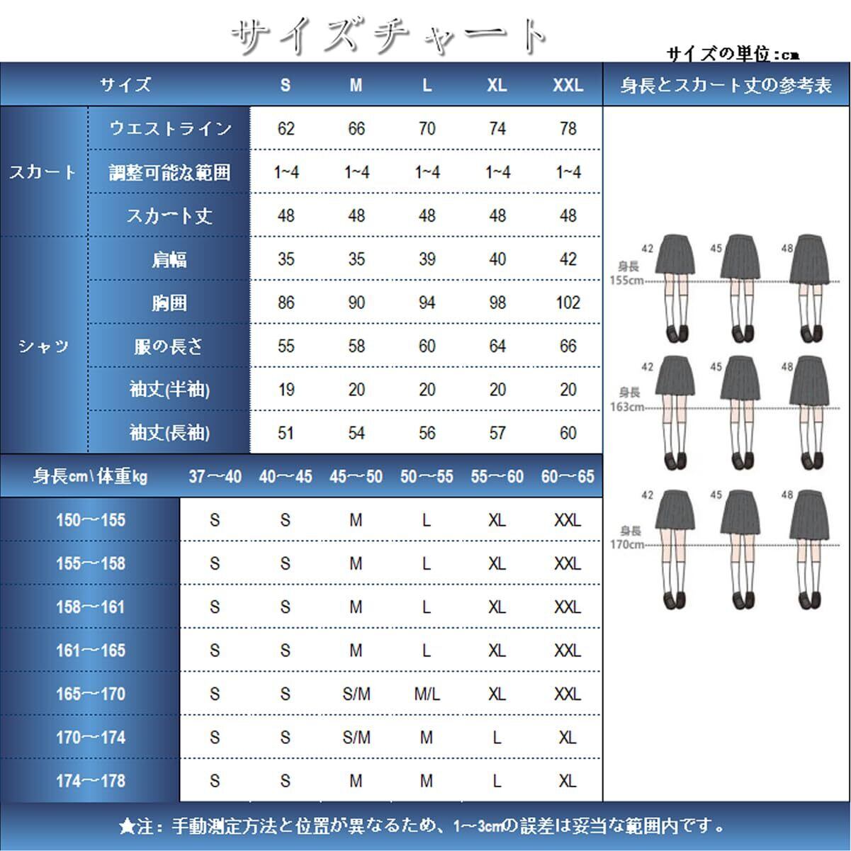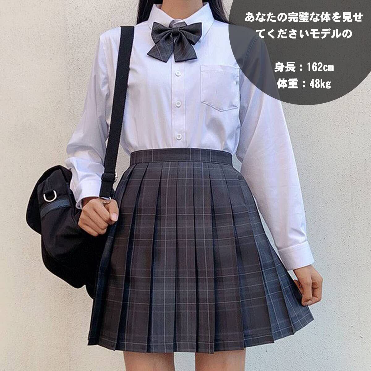 【4点セット内容】48cmのスカート、角襟長袖白シャツ、リボン、ネクタイ。シャツはシンプルな白の長袖デザインで、前胸ポケットがあり、生地は通気性が良く 、ブラウスは透け透けじゃないし。スカートの長さは48センチに統一されています,ネクタイの長さは30cmです。