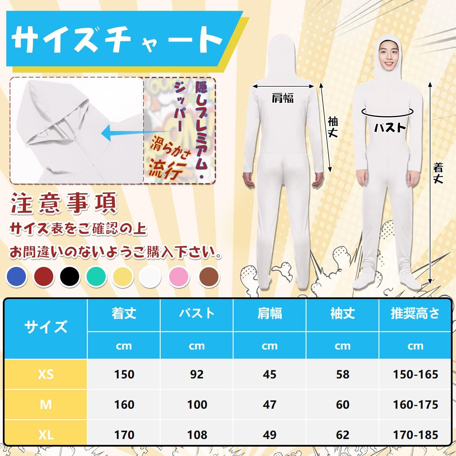 【2022最新】全身タイツ コスチューム コスプレ 顔部分が開いている 仮装 ストレッチ 顔出し 変装 伸縮 着ぐるみ おもしろ コスチューム 衣装 ハロウィン 仮装 学園祭 歓迎会 文化祭 (ホワイト, XL)