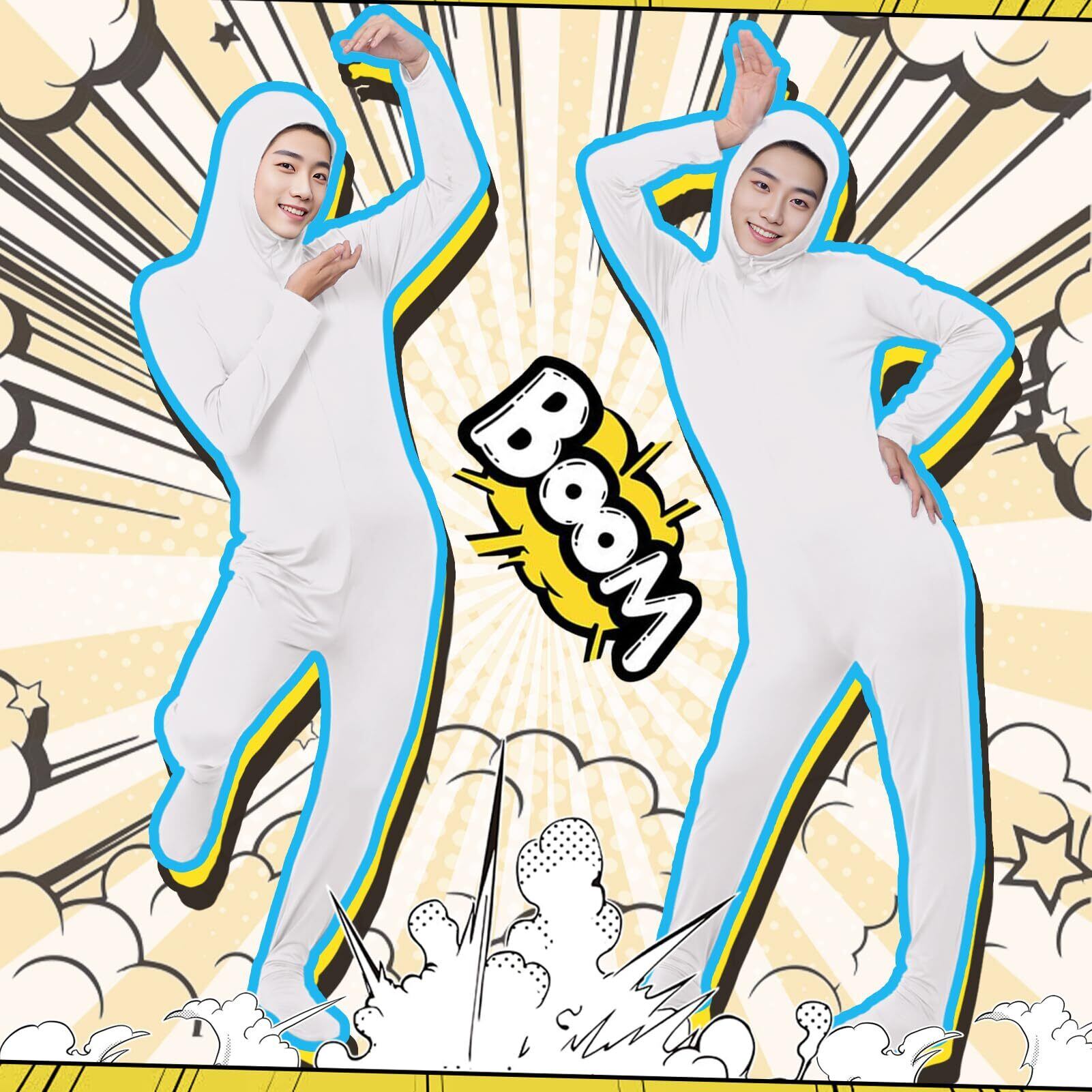 全身タイツ コスチューム コスプレ 顔部分が開いている 仮装 ストレッチ 顔出し 変装 伸縮 着ぐるみ おもしろ コスチューム 衣装 ハロウィン 仮装 学園祭 歓迎会 文化祭 (ホワイト, XL)