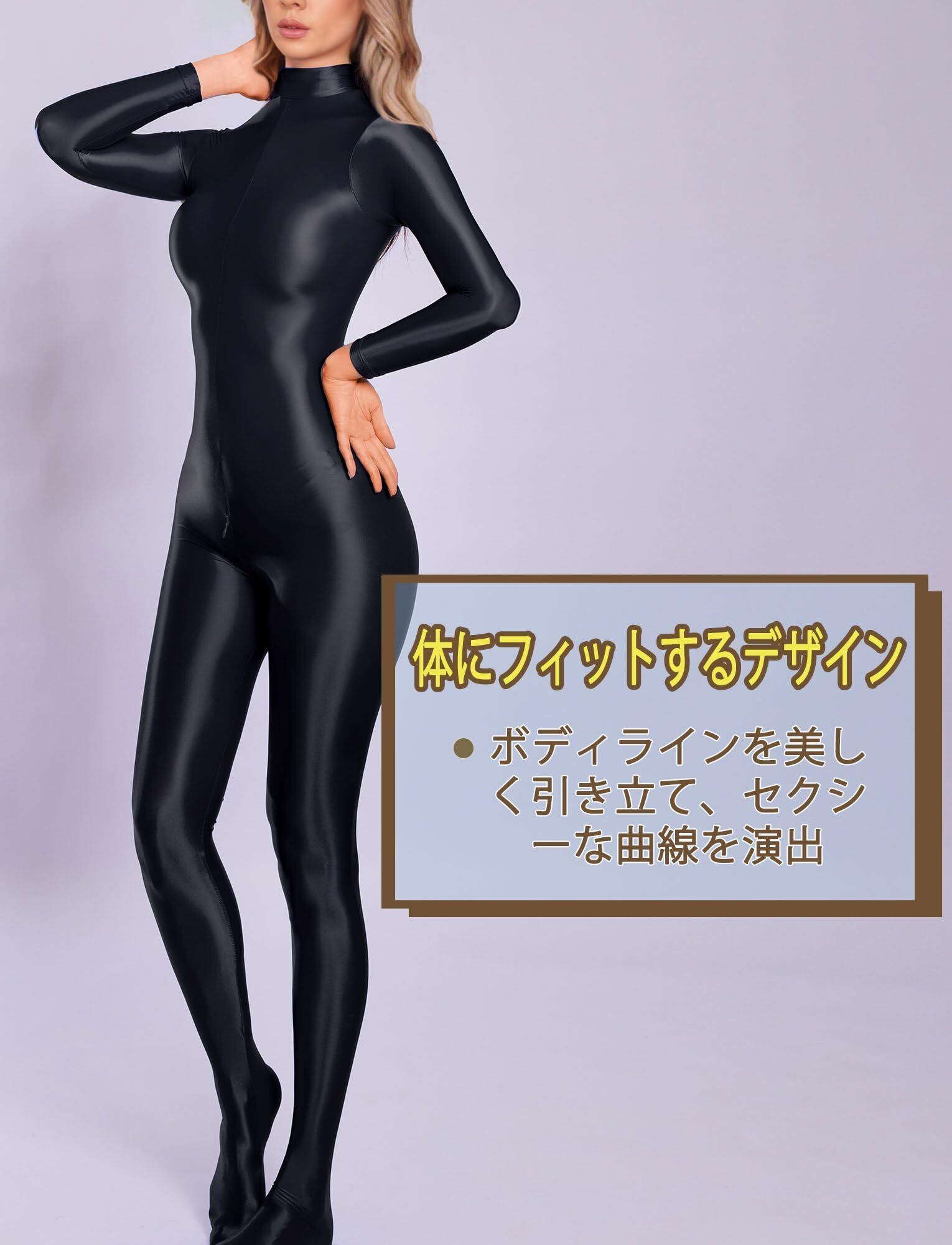セクシー ボディコン レディース 光沢 全身タイツ 長袖 レオタード コスプレ 大人 ボディスーツ コスチューム 仮装 パーティー ハロウィン クラブ ブラック XL