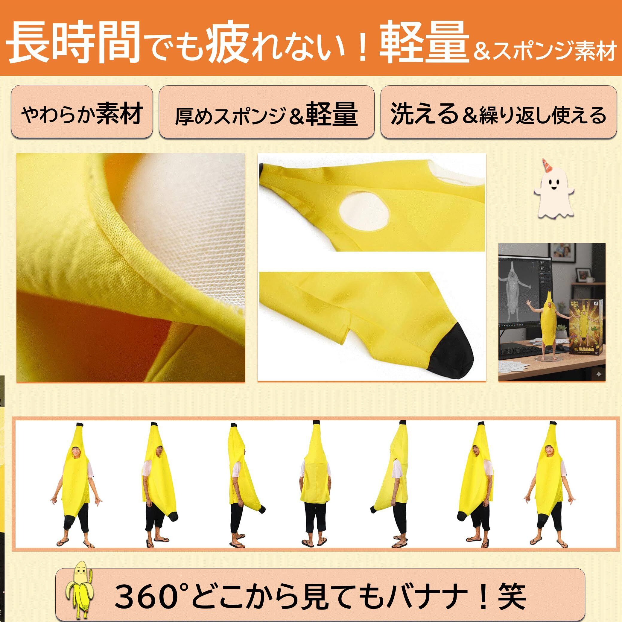 バナナ コスプレ L ハロウィン 衣装 仮装 コスチューム 着ぐるみ 大人用 男女兼用 学園祭 文化祭 余興 面白い コスチューム 大きい サイズ Lサイズ