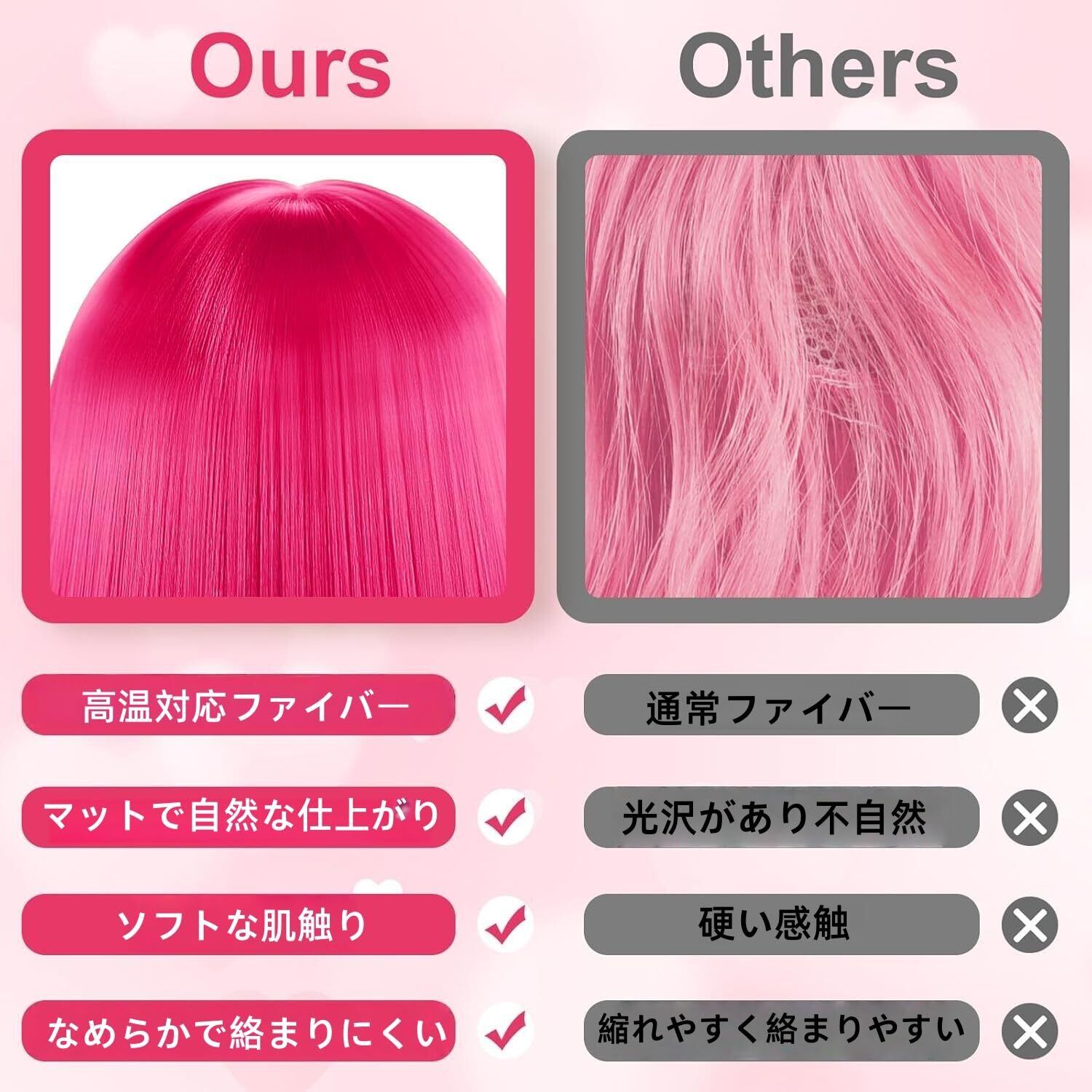 カラー:左側の写真通りです。ブルー、パープルウイッグなど9色を提供させていただきます。お客様は自分の好きなカラーを選んでください。モニターの設定や撮影環境の違いで実物と若干色味が異なることを予めご了承ください。