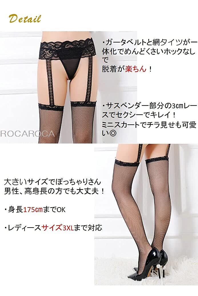 大きいサイズのガーターベルトと網タイツが一体化した便利でセクシーなガーターストッキングです。ショーツ、tバックは、付いていません!