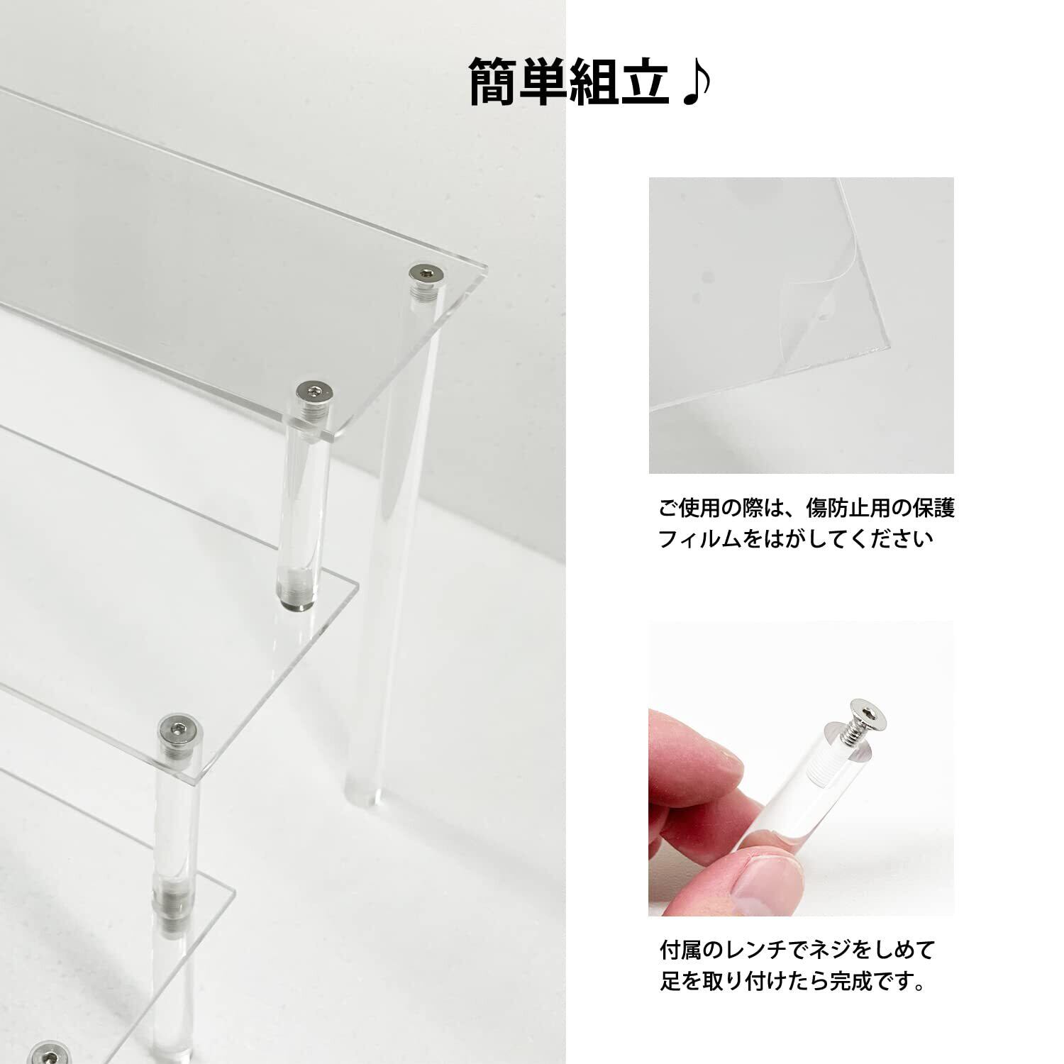 【アクリルひな壇】奥行のある階段上に配置できるため小さなコレクションを豪華に飾ることができます。 【簡単組立】ネジとレンチが付属しており、足を取り付けたら完成です。アクリル保護用のビニールをはがしてお使いください。