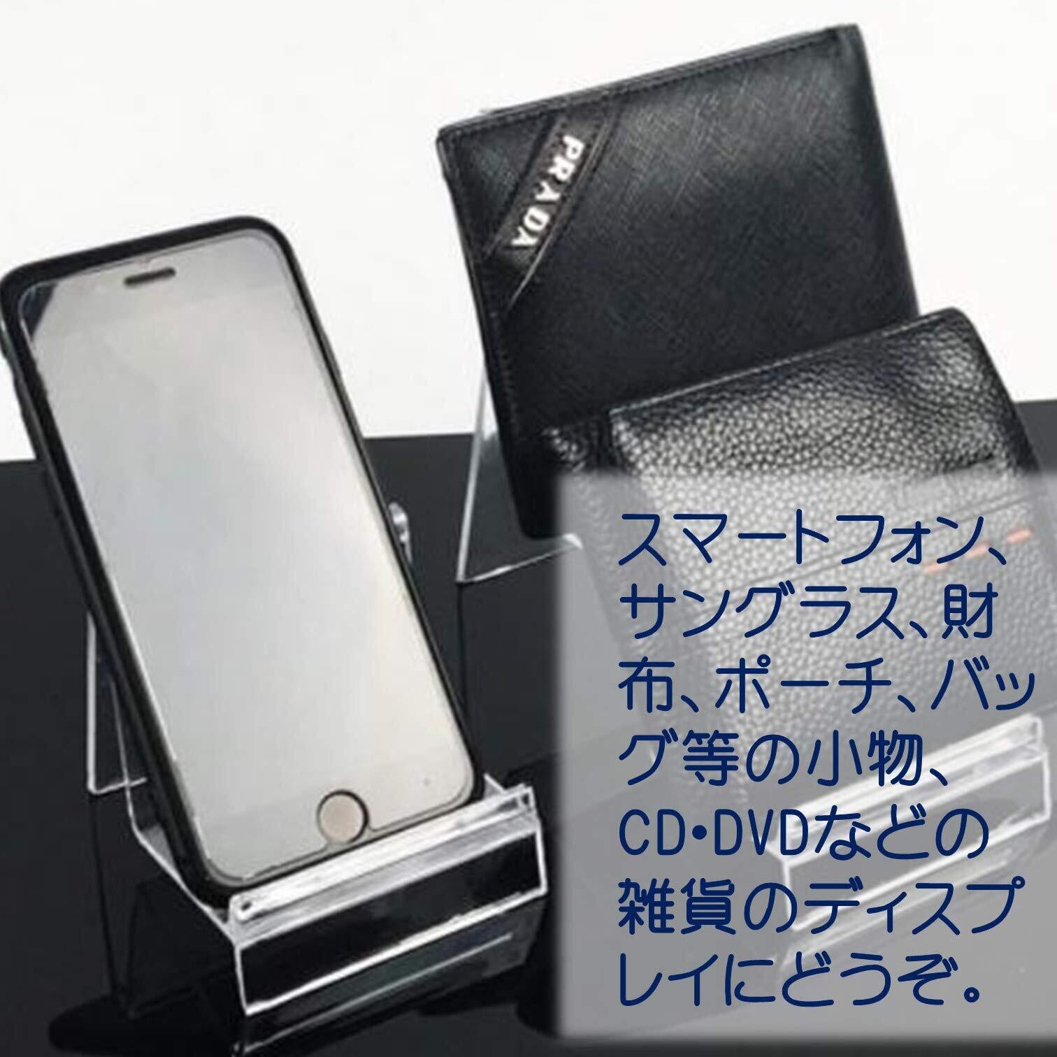 スマートフォン、携帯電話、サングラス、財布、ポーチ、バッグ等の小物、CD・DVDなどの雑貨のディスプレイにどうぞ。