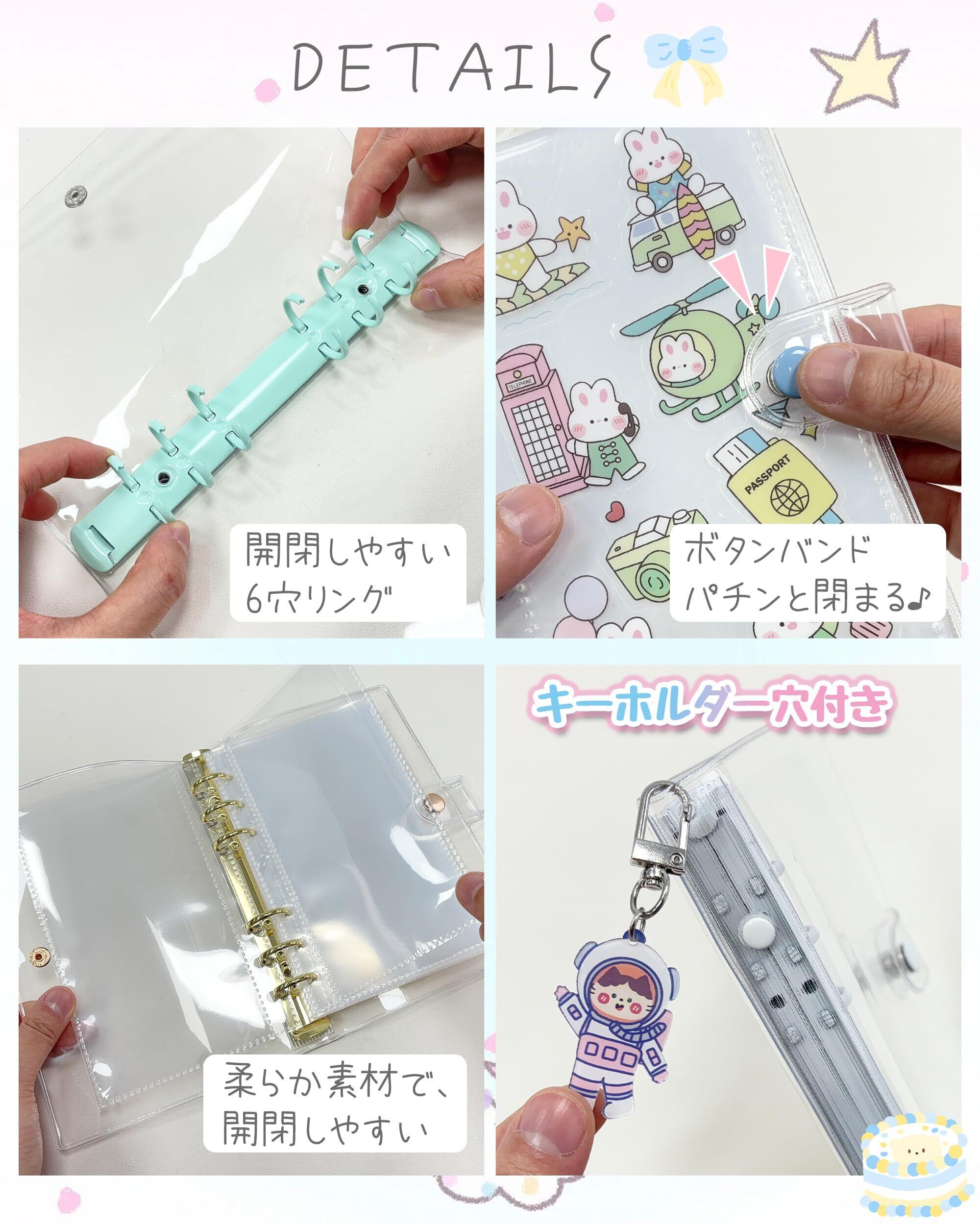 【丈夫な金属製リング&&しっかり留まるスナップボタン採用】 金属リングは軽く押すだけで開閉でき、リフィルの追加や交換もラクラク。お好みに合わせて自由にカスタマイズできます。さらに、しっかり留まるスナップボタンで、バッグの中でも安心です。推し活以外にも日常の様々な用途に対応した便利な収納ケースです。シール収納だけでなく、日記・スケジュール帳・トレカアルバム・旅の思い出帳としても活躍!アイディア次第であなただけのオリジナル収納に