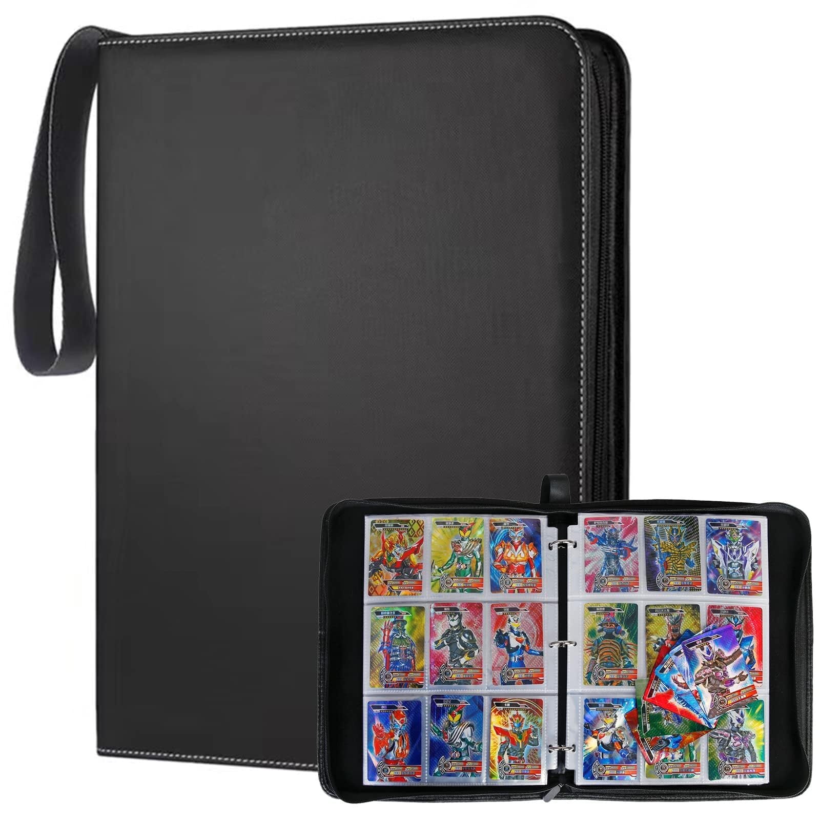 【2022最新】9つのポケットに918枚のカードを収納可能 トレーディングカード用アルバム・ファイル ポータブルファスナーカードコレクション (両面 9ポケット 918枚収納)