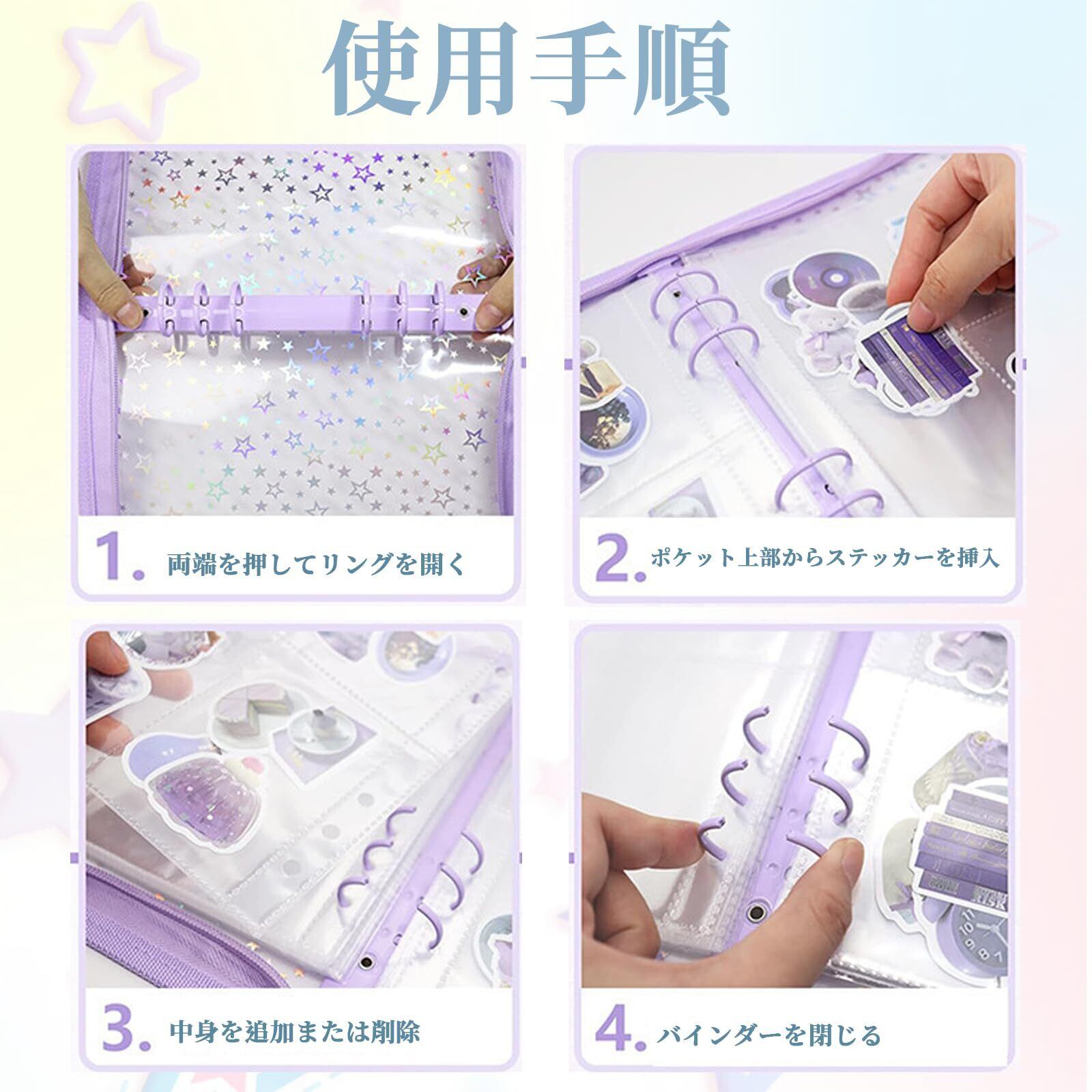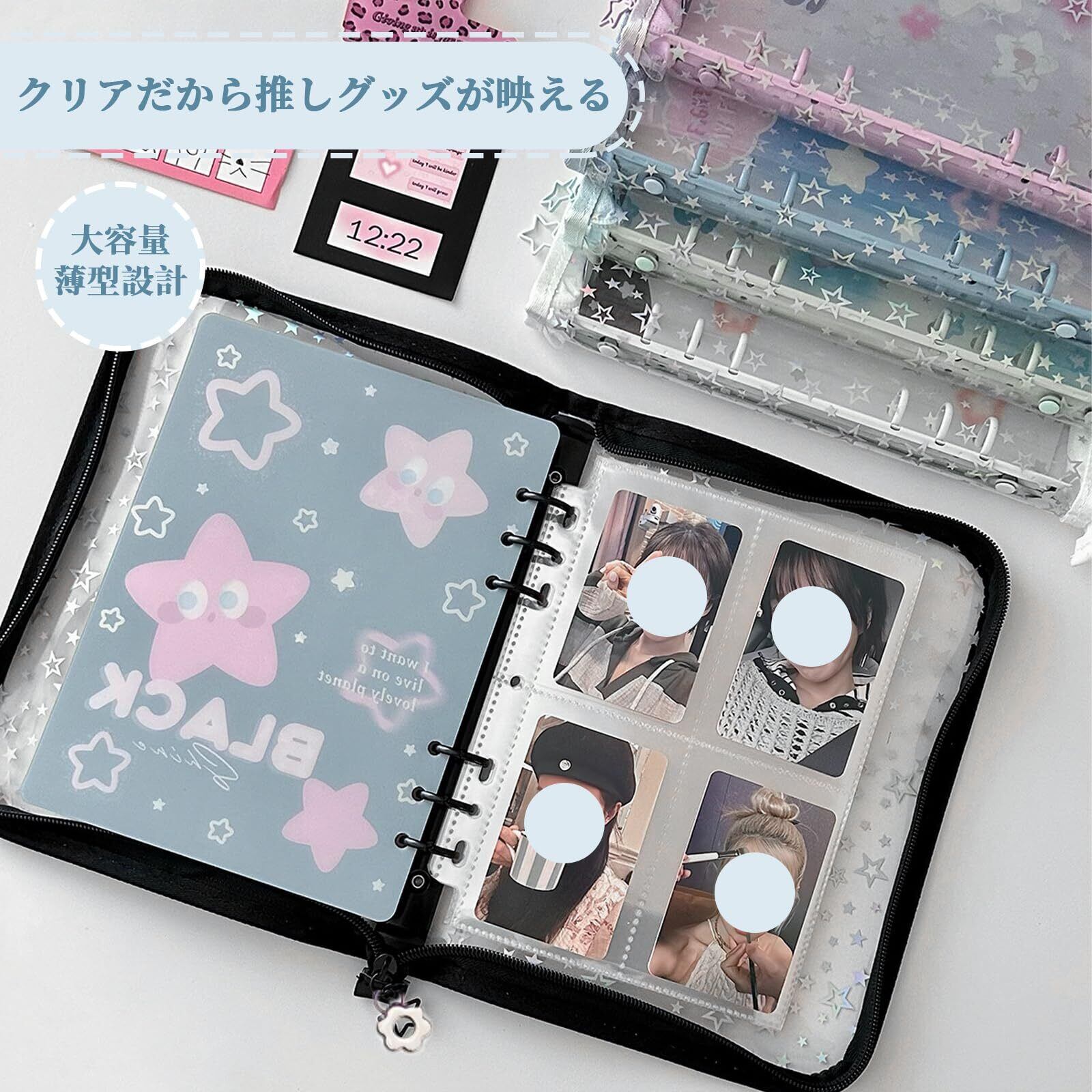 シール帳 星柄 A5 シールバインダー トレカケース コラージュノート 6穴 4ポケット両面収納リフィル 20枚入り(青)