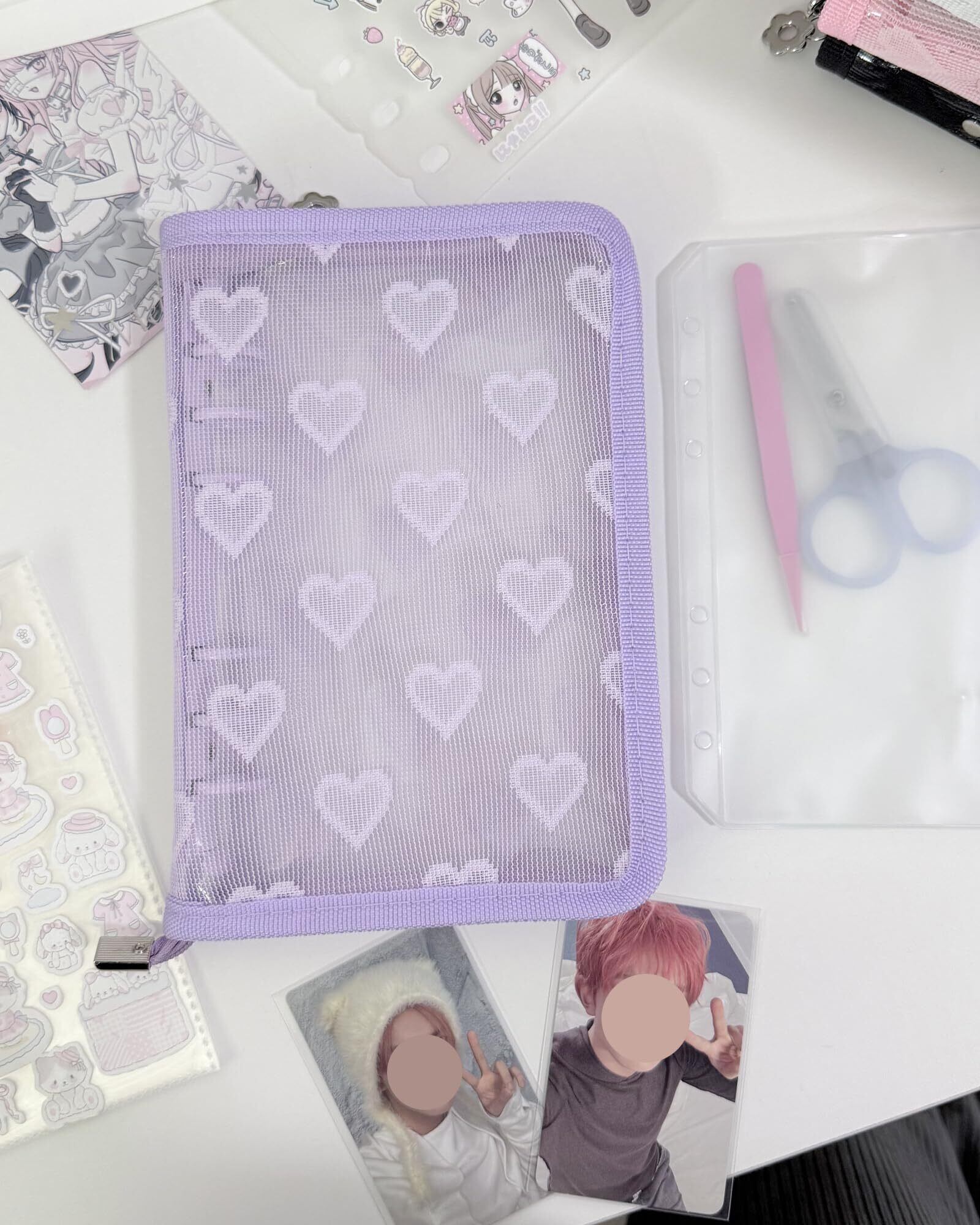 【朦朧感あふれる夢幻デザイン】バインダーは多種なカラーから選べ、あなたのグッズに合わせて自由に組み合わせ可能です。表紙はPVC素材にレースのハート柄チュールを重ねたデザインで、上品で可愛らしい雰囲気を演出します。トレカ・写真もまとめて収納:付属のポケットリフィル30枚で、推し活や思い出の整理が完了。