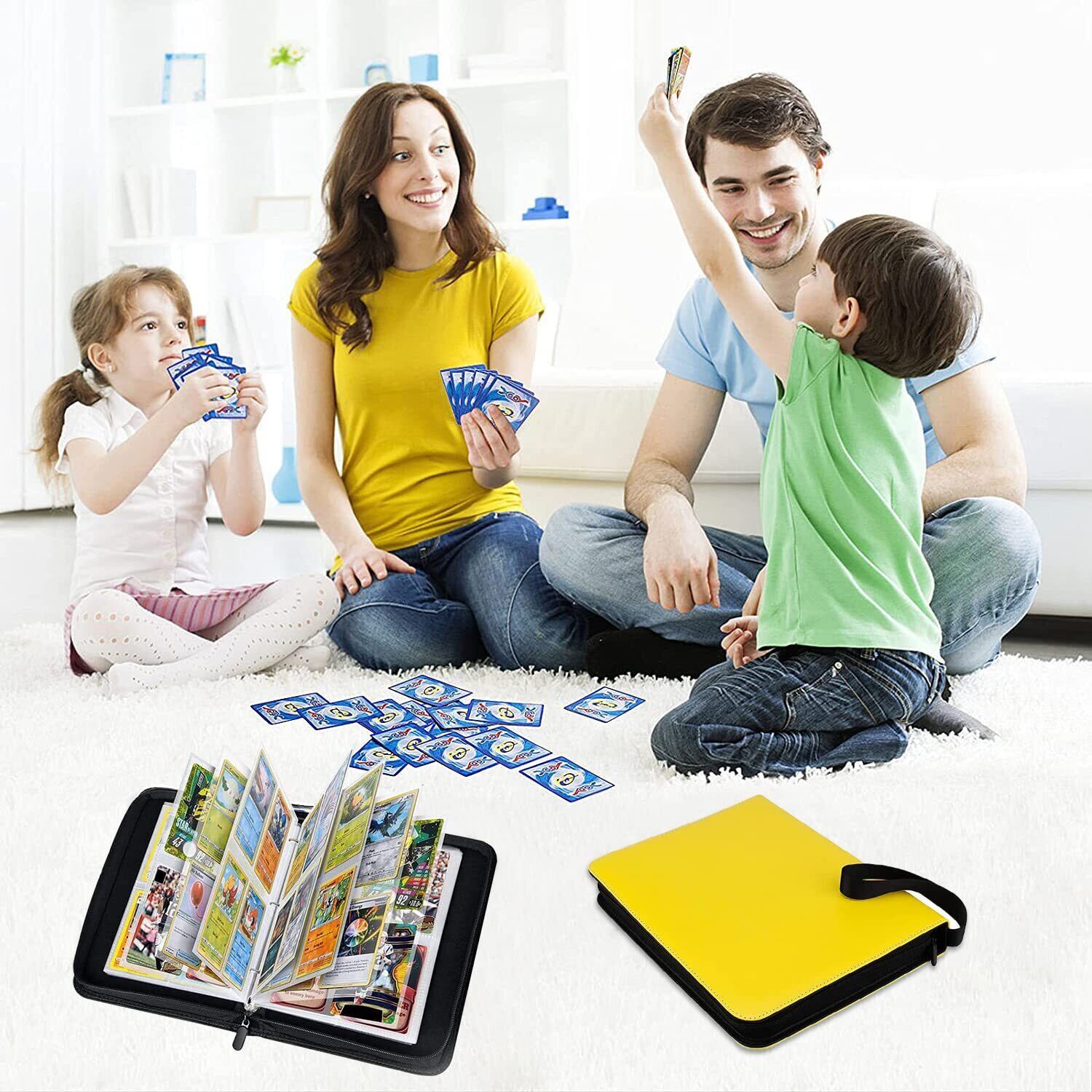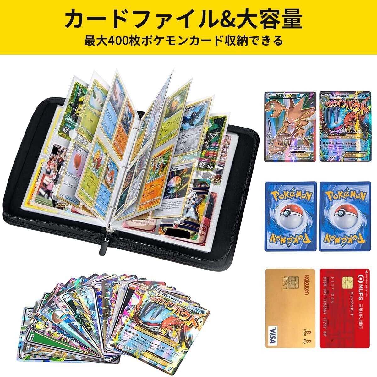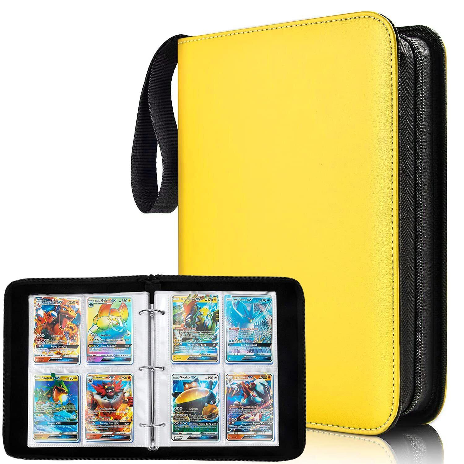 【特価商品】カードファイル カードバインダー シールファイル 4ポケット 400枚収納 ポータブルファスナー カードシート他のゲームカードを集める (4ポケット, イエロー)
