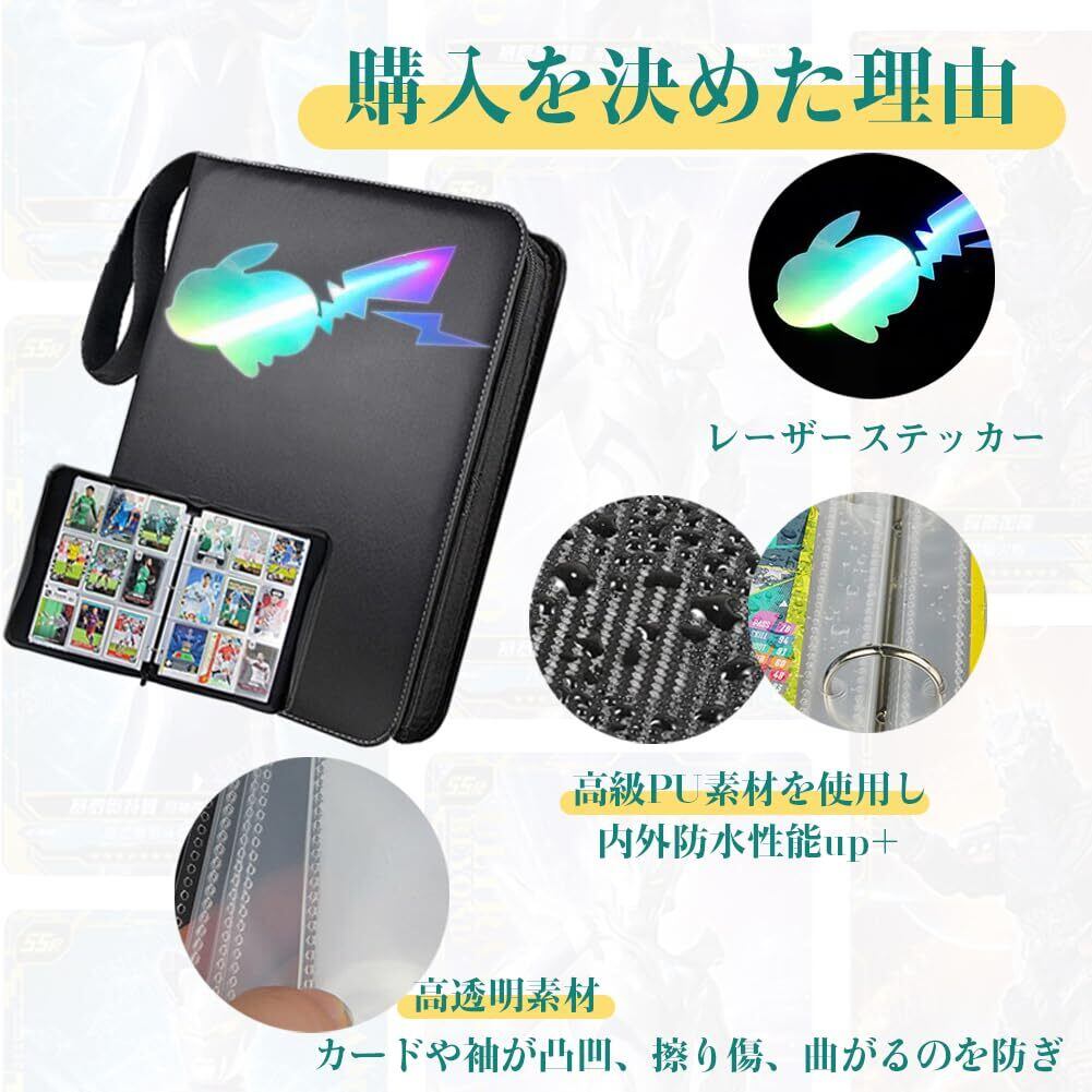 REDICE カードファイル スターカード 9つのポケット 50枚カードケース付き 4つのポケット 人気 防水 新PU素材 おしゃれ カードファイル カード収納 野球カード (A1-ブラック, 400枚)