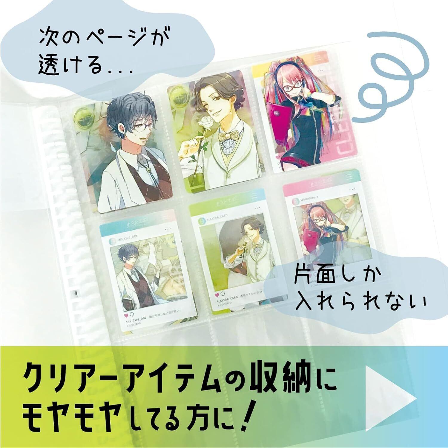ウラ面や次ページが透けにくいのでクリアーアイテムもスッキリ収納出来ます。