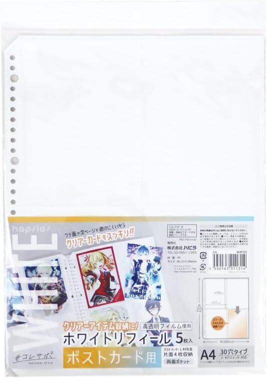 【特価セール】ホワイトリフィール 白台紙リフィール ポストカード用 5枚入 両面タイプ (片面4枚収納) 白台紙 はがき L版写真 リフィル ノーブランド (ポストカード用)