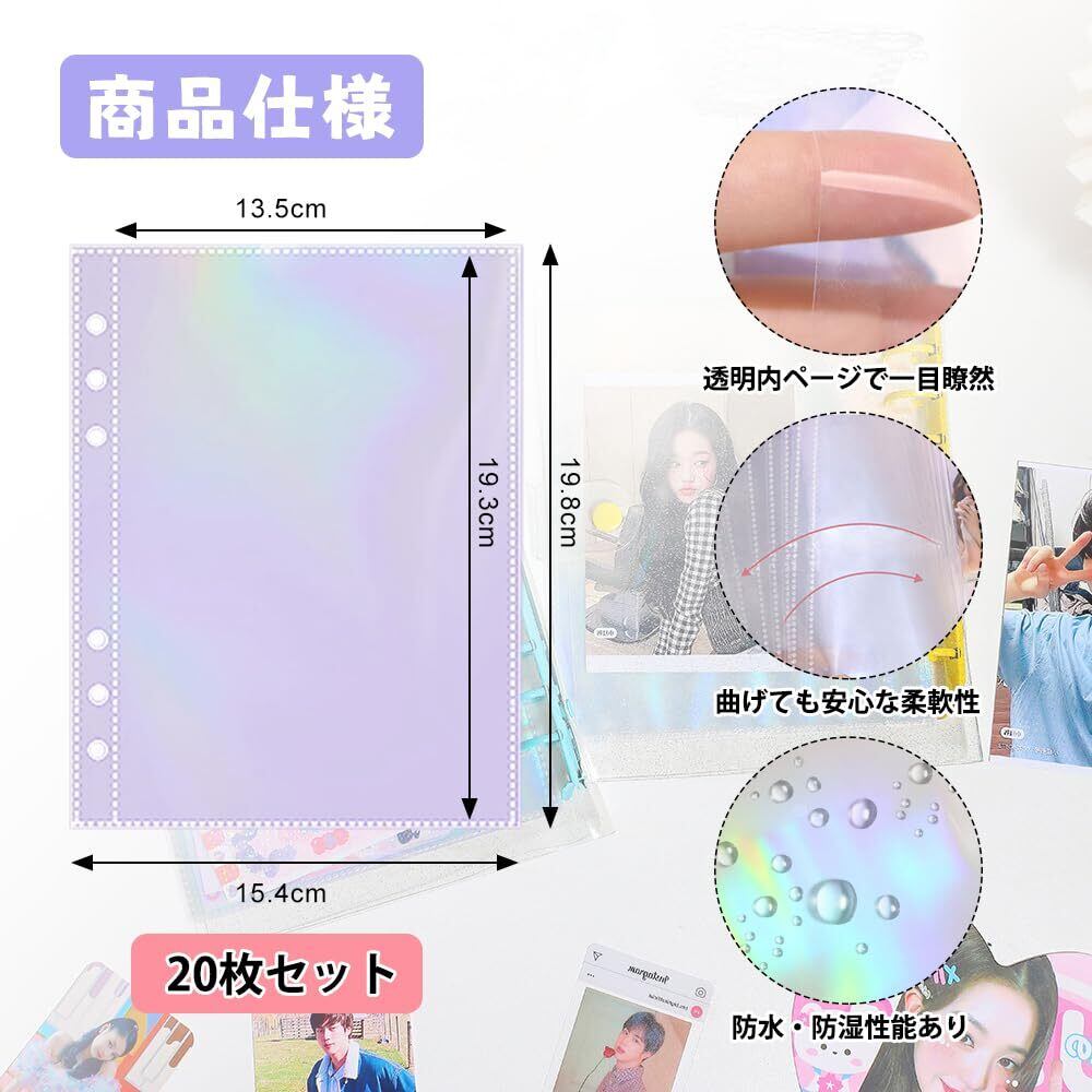 1.【A5・6穴対応&20枚セット】A5サイズ・6穴リングバインダーに対応したシール帳リフィルです。たっぷり使える20枚セットで、シール・トレカ・写真などをまとめて整理可能。追加購入しやすく、コレクション管理にも最適です。