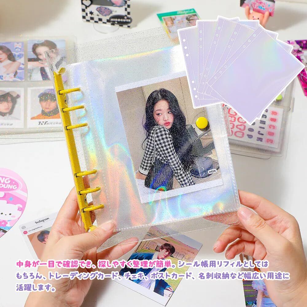 5.【整理しやすく用途も多彩】中身が一目で確認でき、探しやすく整理が簡単。シール帳用リフィルとしてはもちろん、トレーディングカード、チェキ、ポストカード、名刺収納など幅広い用途に活躍します。