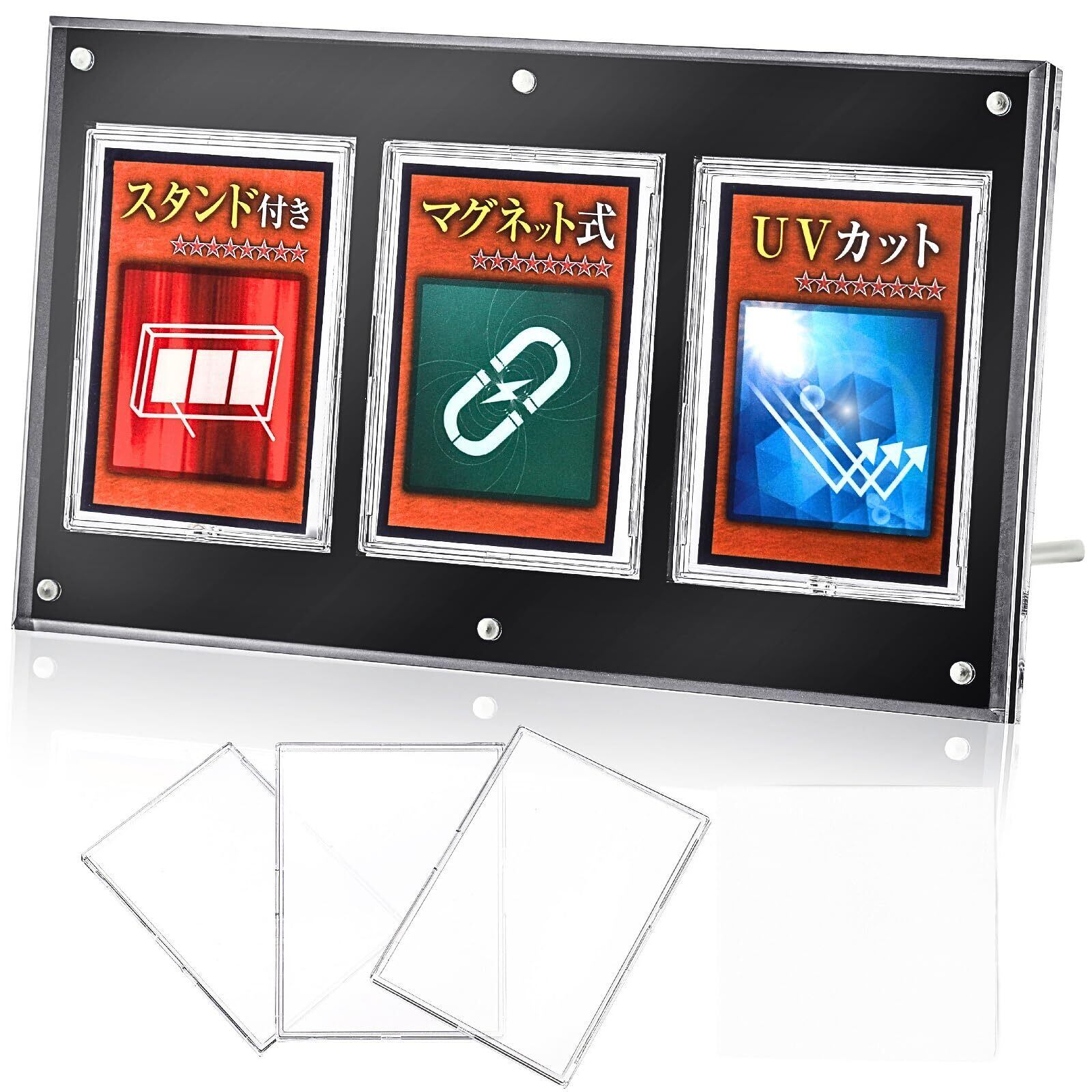 アクリル本舗 スクリューダウン UVカット マグネットローダー ディスプレイケース スタンド 付き カードケース トレーディングカード トレカ 対応 (ブラック, 3枚用)