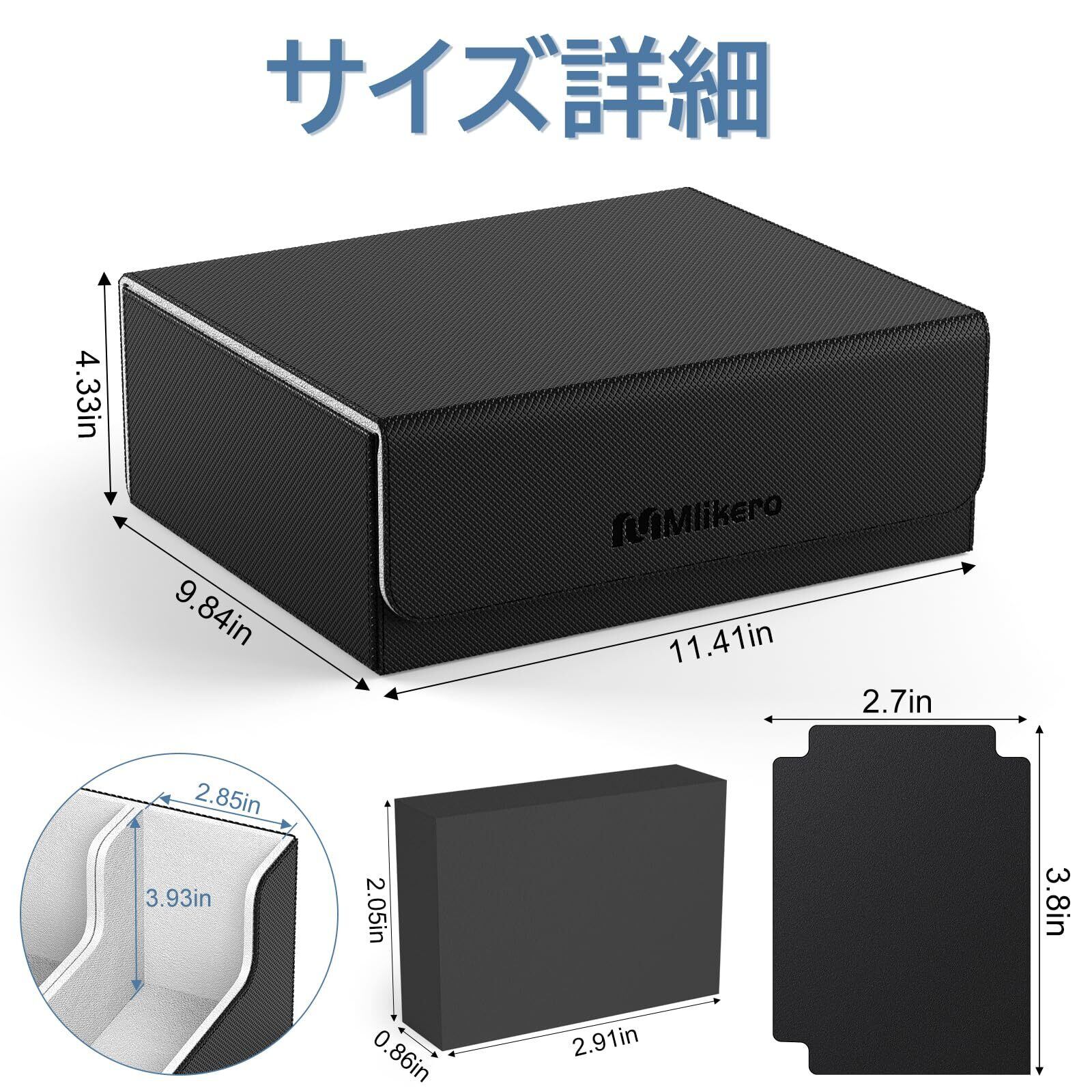 Mlikero デッキケース カードケース 大容量 1800枚収納 カードケース トレカ マグネットトレカケース ストレージボックス トレカ 仕切り10枚、フォームプラグ3個付き(黒灰)