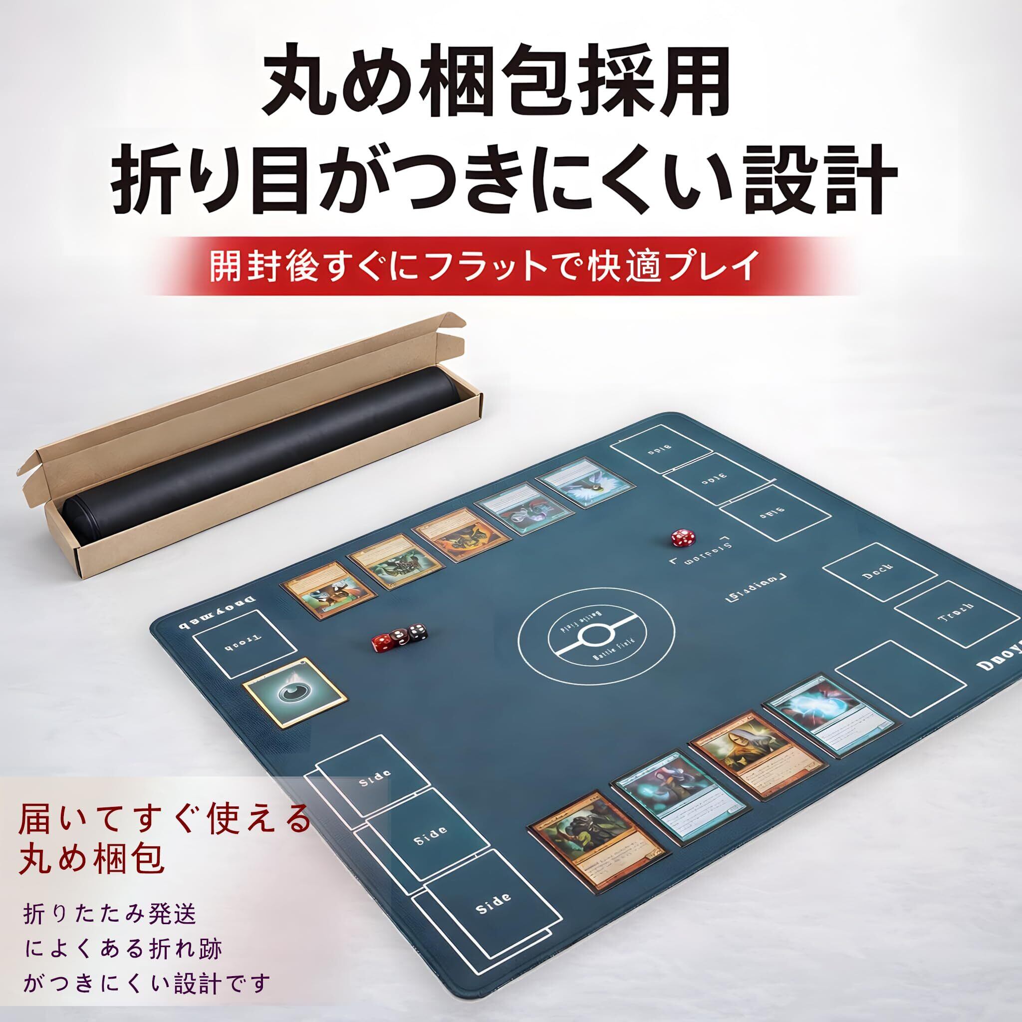 【60×60cm・収納バッグ付き|持ち運びも便利】2人用にぴったりの60×60cmサイズ。カードゲームはもちろん、デスクマットやマウスパッドとしても活用可能。専用収納バッグ付きで持ち運びや保管も簡単、友人宅やイベントでもすぐに使えるプレゼントにも最適な一枚。