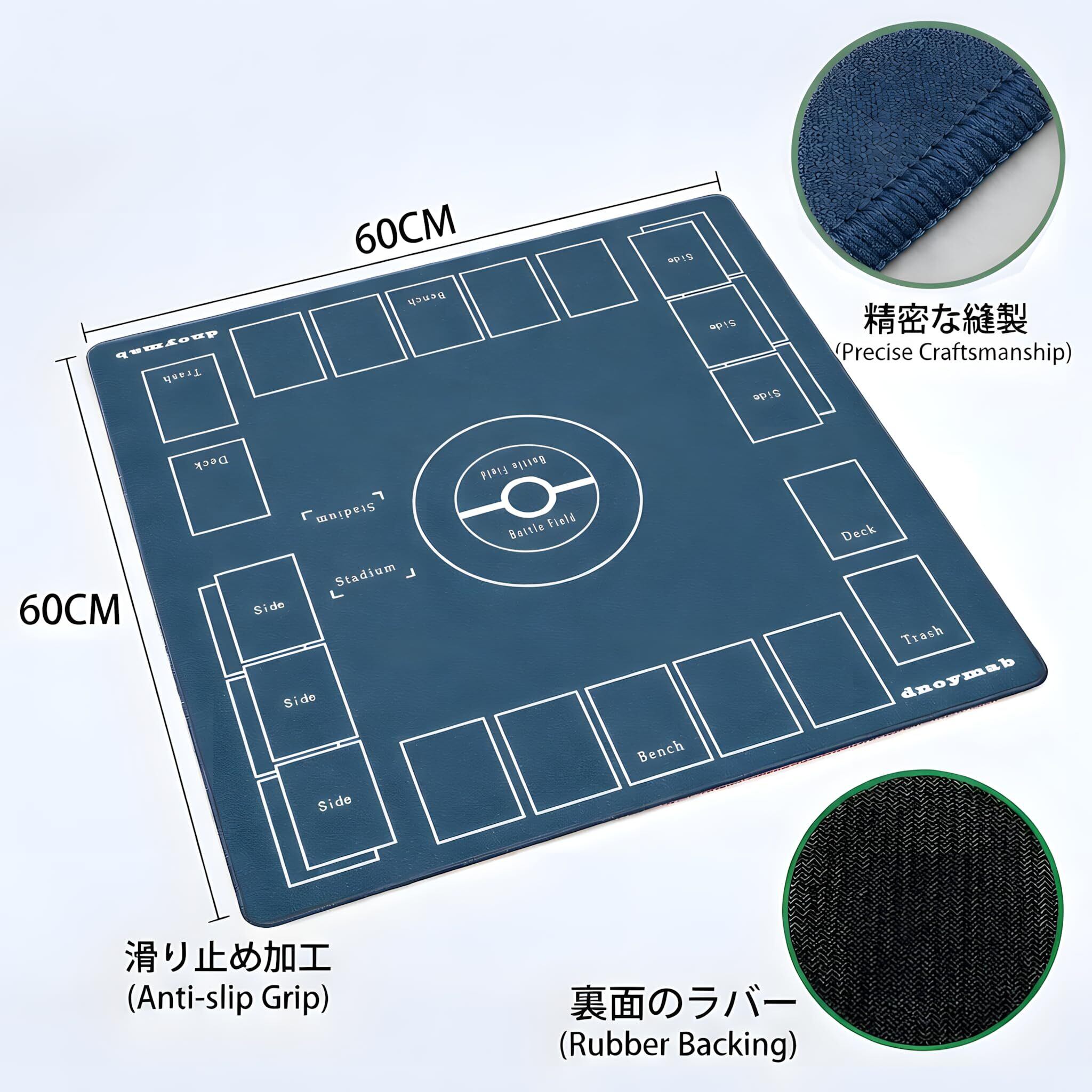 【新着商品】フルサイズ プレイマット 60×60cm 折り目なし TCG ラバー カードゲーム用 マット トレーディング 2人用 滑り止め 全面縫製 安定感向上 収納バッグ付き(厚手3mm 紺)