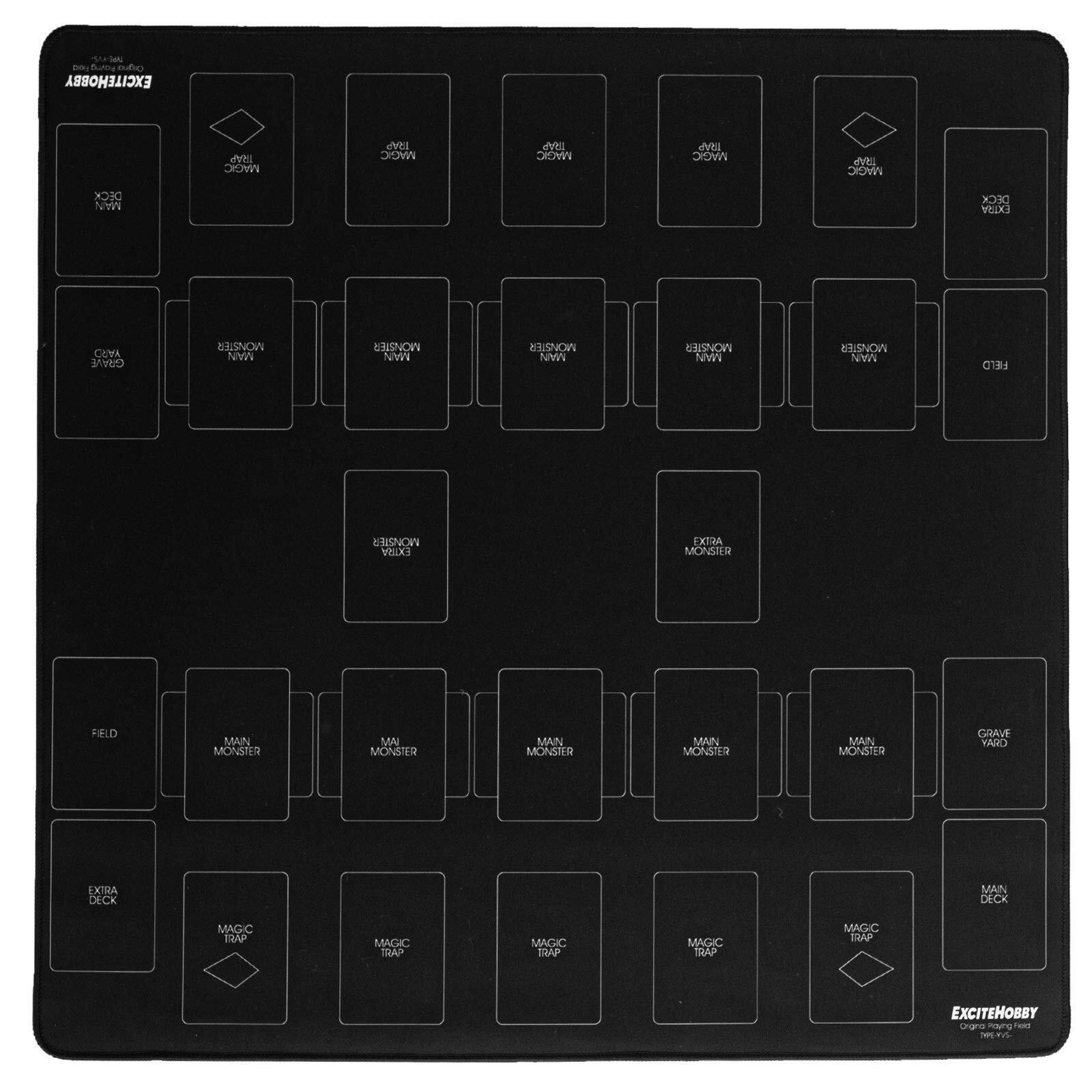 EXCITEHOBBY 遊戯王 プレイマット 60cm×60cm 黒無地 シンプルデザイン 布面×ラバー 滑りにくい めくりやすい フィールドガイド印刷 全面かがり縫製 撥水 OCG専用 耐久性マット