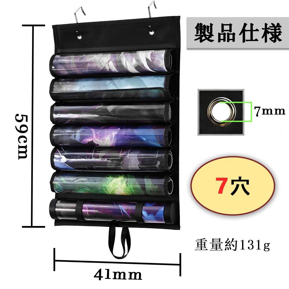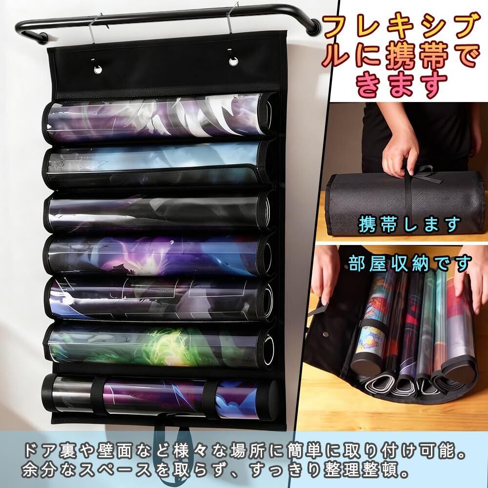 チューブ型収納袋 ゲームマット収納 カードゲーム専用 防塵 携帯用 透明プラスチックカードスロット 省スペース 吊り下げ可能 巻き取りベルト 互換アクセサリー 大容量 フック2個付属 壁面 寝室のドア 吊り下げ式ゲームマット収納ラック (7枚)