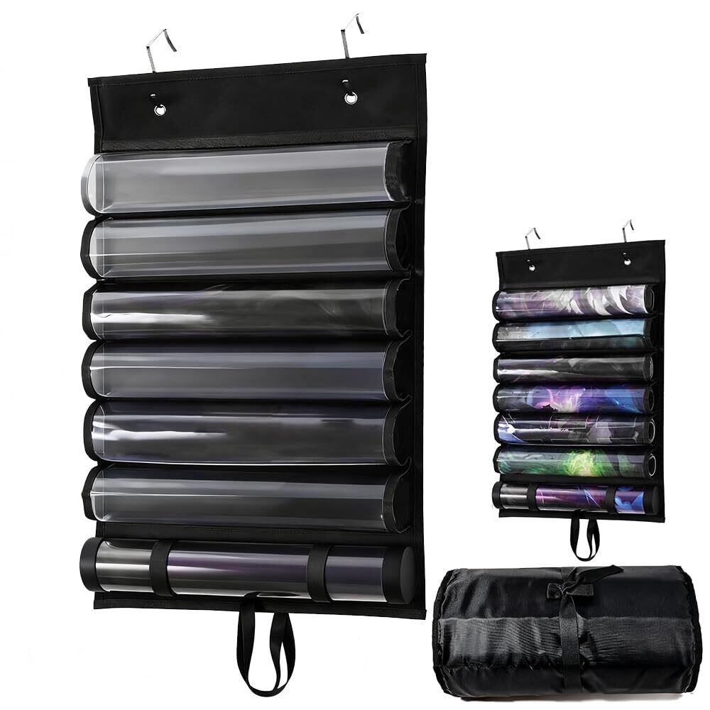 【特価セール】チューブ型収納袋 ゲームマット収納 カードゲーム専用 防塵 携帯用 透明プラスチックカードスロット 省スペース 吊り下げ可能 巻き取りベルト 互換アクセサリー 大容量 フック2個付属 壁面 寝室のドア 吊り下げ式ゲームマット収納ラック (7枚)