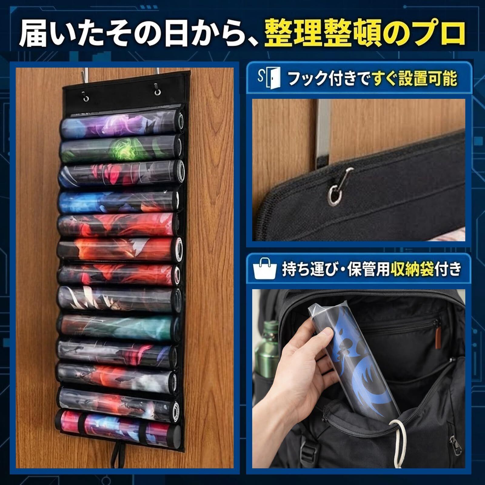 【新着商品】プレイマットケース 収納 吊り下げ プレイマット カバー カードゲーム プレマ 壁掛け 省スペース 収納袋付 (プレイマットケース7段 + 収納袋9枚付き)