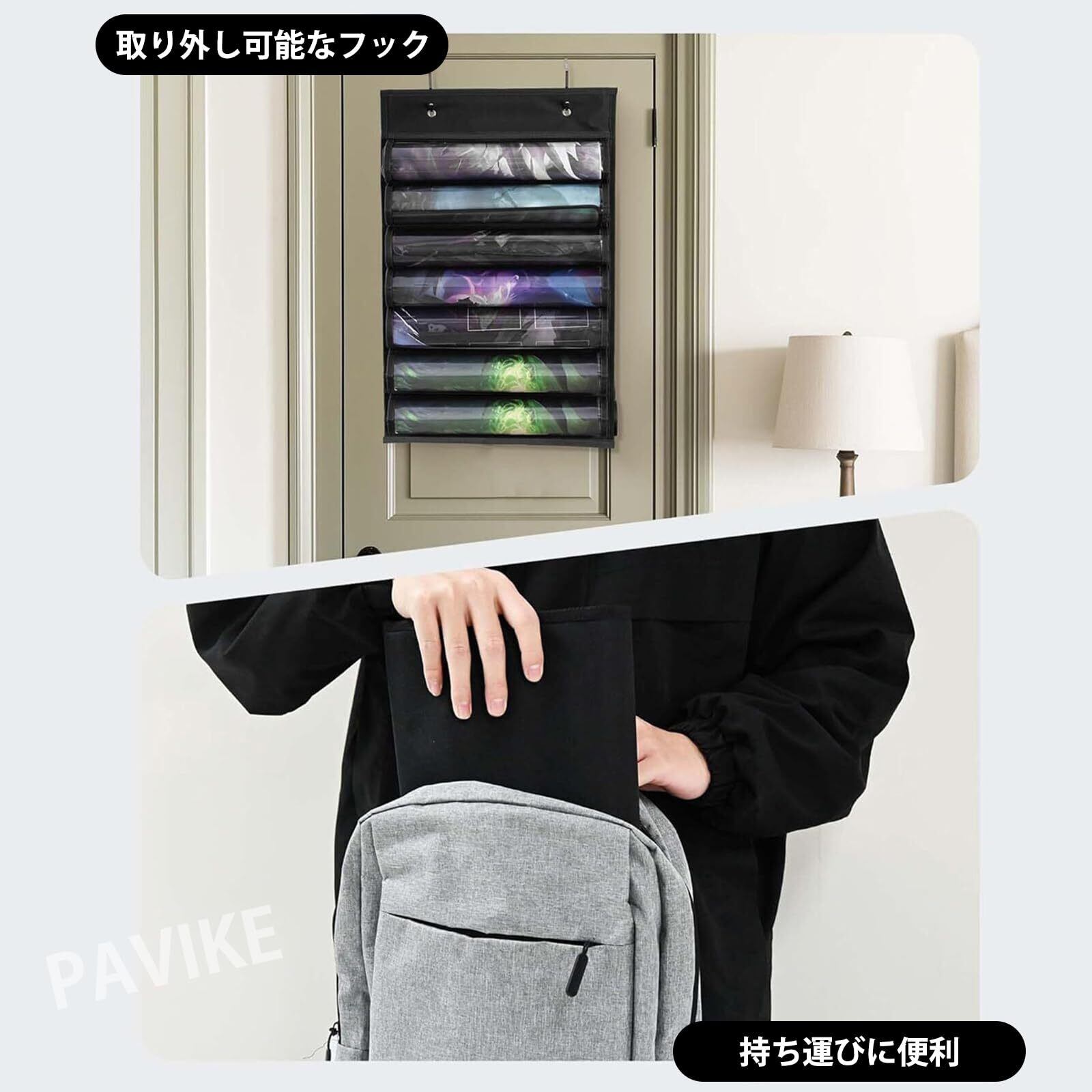 【新着商品】プレイマットケース (7収納口付き)プレイマット収納 プレイマットホルダー プレマ収納用 ウォールポケット 透明プラスチックスロット付き カードゲーム用 カバー 防塵 吊り下げ フック2個付き