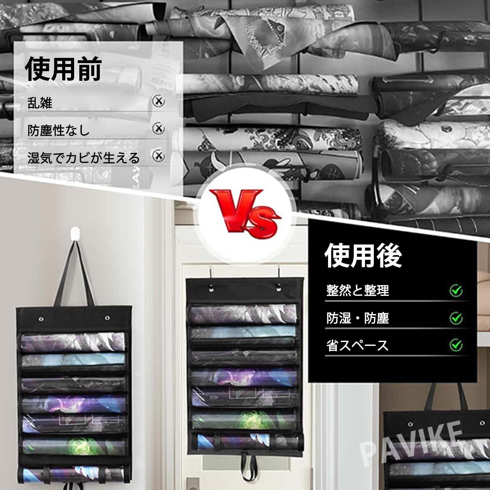 プレイマットケース (7収納口付き)プレイマット収納 プレイマットホルダー プレマ収納用 ウォールポケット 透明プラスチックスロット付き カードゲーム用 カバー 防塵 吊り下げ フック2個付き